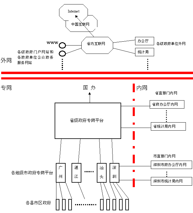 ——以省政府網(wǎng)絡中心為樞紐、上聯(lián)國辦、橫聯(lián)省直單位、縱向下聯(lián)所有地