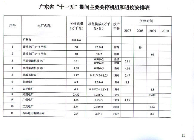 附件:廣東省“十一五”期間主要關(guān)停機(jī)組和進(jìn)度安排表