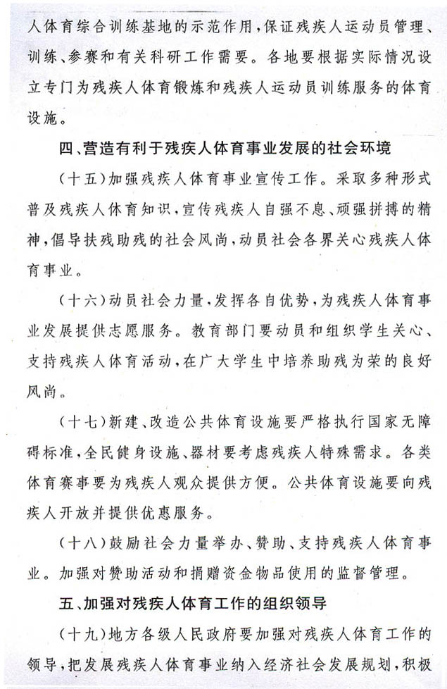 殘疾人體育工作意見的通知