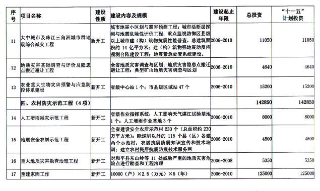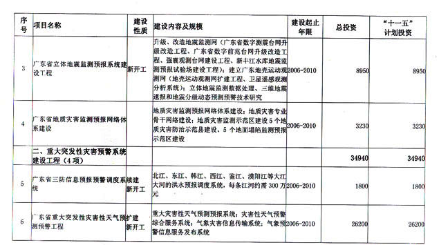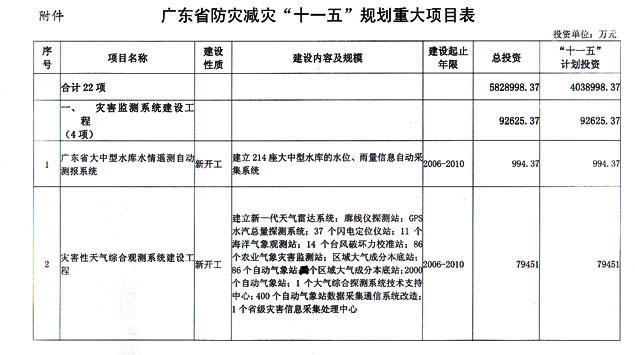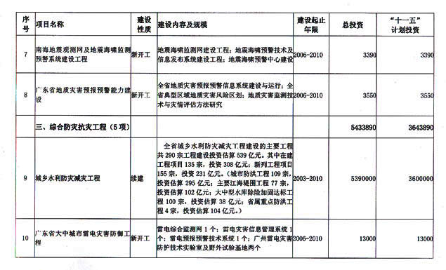 附件:廣東省防災(zāi)減災(zāi)“十一五”規(guī)劃重大項(xiàng)目表
