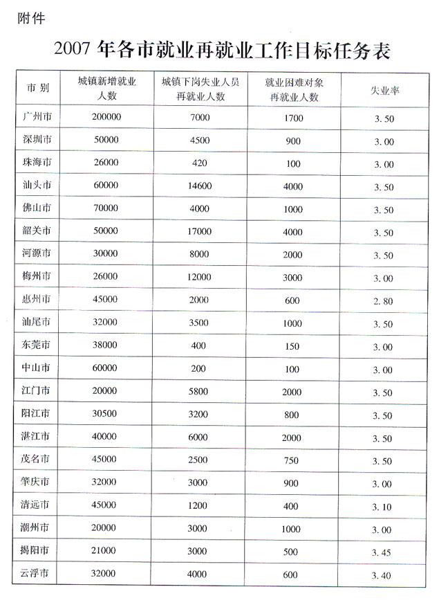 廣東省2007年就業(yè)再就業(yè)工作目標(biāo)