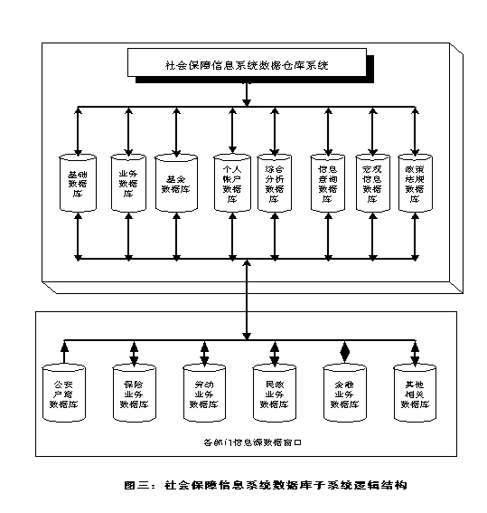?。ㄈ┫到y(tǒng)數(shù)據(jù)倉(cāng)庫 社會(huì)保障信息系統(tǒng)數(shù)據(jù)倉(cāng)庫是一個(gè)統(tǒng)一的、綜合的、分布式的大型數(shù)據(jù)倉(cāng)庫, 它主要包括基礎(chǔ)數(shù)據(jù)庫、社會(huì)保障業(yè)務(wù)數(shù)據(jù)庫、基金數(shù)據(jù)庫、個(gè)人帳戶數(shù)據(jù)庫、 綜合分析數(shù)據(jù)庫、查詢數(shù)據(jù)庫、宏觀數(shù)據(jù)庫、政策法規(guī)等八大數(shù)據(jù)庫系統(tǒng)。數(shù)據(jù) 倉(cāng)庫系統(tǒng)構(gòu)成如圖三所示。 |