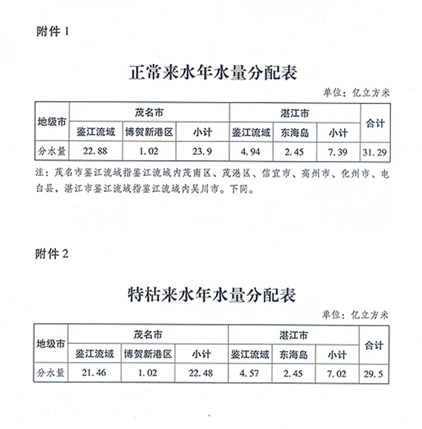 ?。ǘ┓峙浞秶?/strong>鑒江流域水資源分配范圍為我省鑒江流域供水所涉及的行政區(qū)域,包括茂名市和湛江市。其中,茂名市包括鑒江流域內(nèi)茂南區(qū)、茂港區(qū)、信宜市、高州市、化州市、電白縣和流域外博賀新港區(qū);湛江市包括鑒江流域內(nèi)吳川市和流域外東海島。