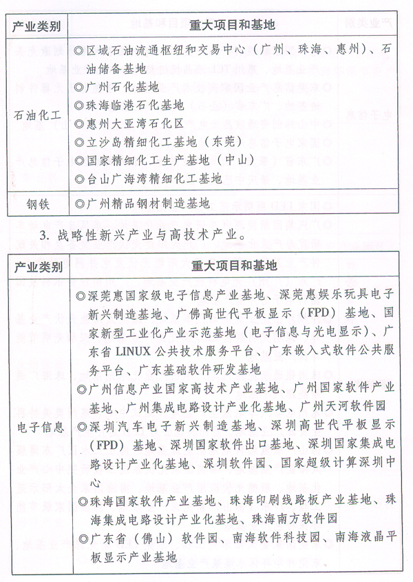 沿海生態(tài)環(huán)保型重化產(chǎn)業(yè)帶:惠州—深圳—珠海—江門等珠三角沿海地區(qū),重點布局發(fā)展石油化工、精品鋼鐵、海洋工程裝備、海洋生物醫(yī)藥、油氣勘探開采等先進制造業(yè),以及商務休閑、文化創(chuàng)意、教育培訓等現(xiàn)代服務業(yè),形成規(guī)?;?、集約化的臨港產(chǎn)業(yè)帶。適當布局發(fā)展現(xiàn)代農(nóng)業(yè)。