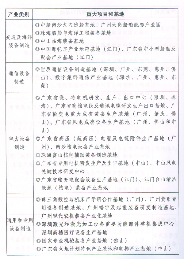 (二)先進制造業(yè)。 做強做大以裝備制造業(yè)和大石化、精品鋼鐵為主體的先進制造業(yè),重點發(fā)展交通及海洋裝備、通信設備、電力設備、通用和專用設備、石油化工、鋼鐵等產(chǎn)業(yè),將珠三角打造成為世界級重大成套和技術(shù)裝備制造產(chǎn)業(yè)基地。