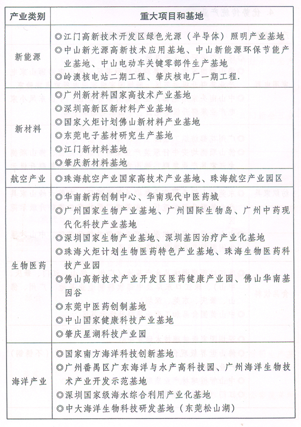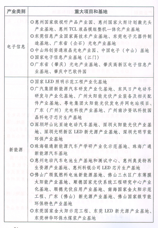 ?。?)新能源。以廣州、深圳為重點,加快建設電動汽車生產(chǎn)基地;以深莞惠和佛山、中山為重點,加快建設國家太陽能光伏高技術(shù)產(chǎn)業(yè)基地;支持深圳率先建成國家新能源產(chǎn)業(yè)基地和低碳經(jīng)濟先鋒城市,支持江門開展低碳經(jīng)濟城市試點,支持肇慶建設低碳經(jīng)濟實驗區(qū),加快建設低碳經(jīng)濟強??;促進廣州、深圳、佛山、東莞環(huán)保節(jié)能產(chǎn)業(yè)加快發(fā)展,打造世界級新能源和環(huán)保節(jié)能產(chǎn)業(yè)基地。
