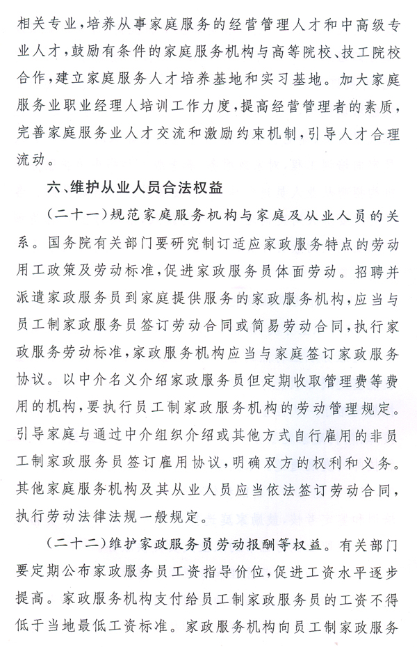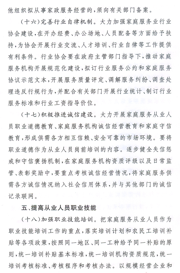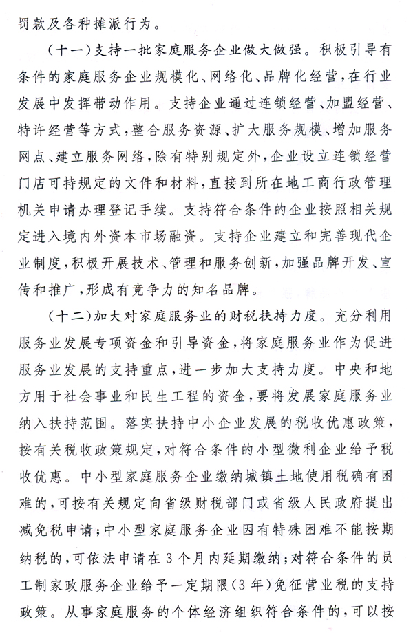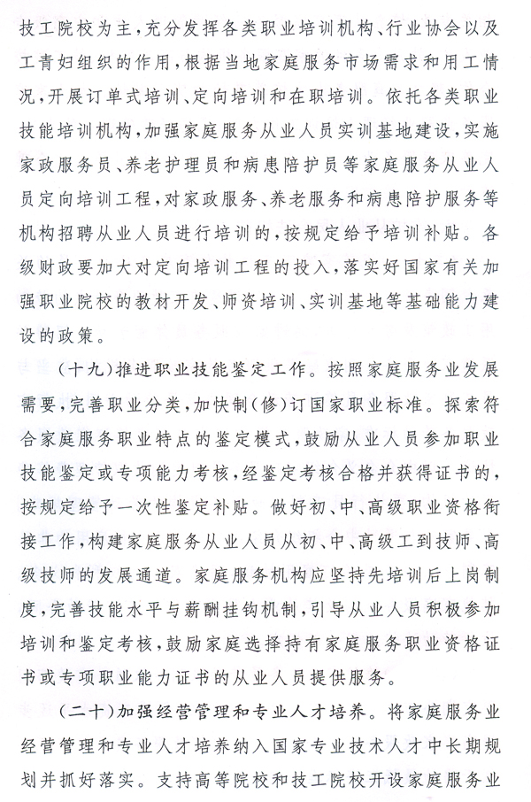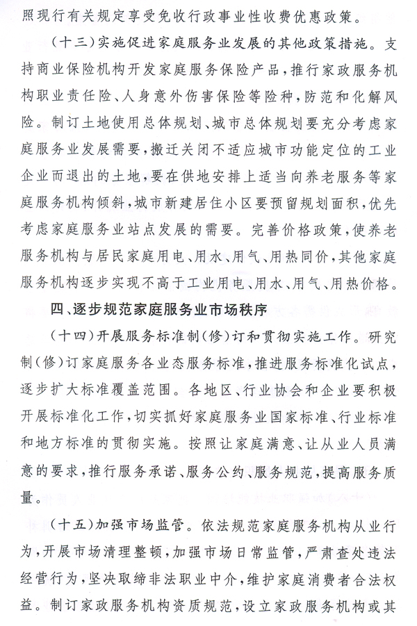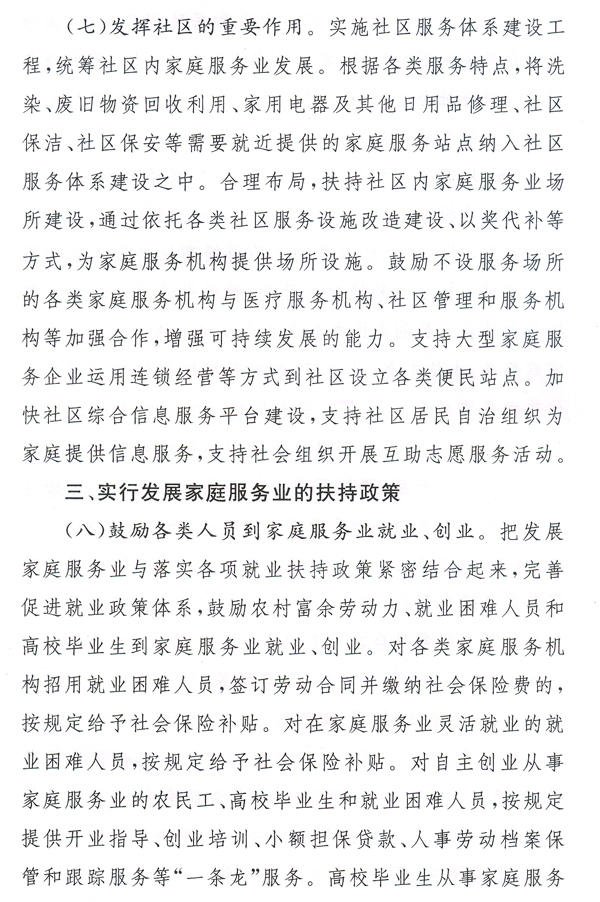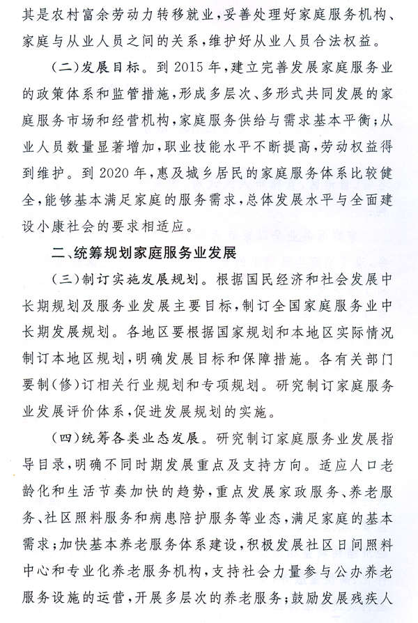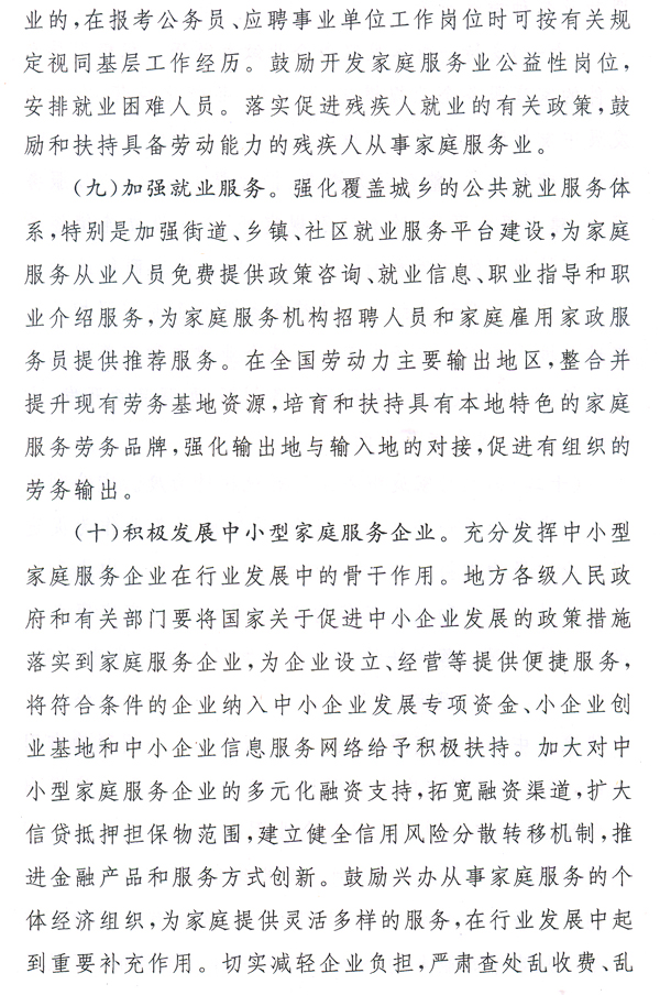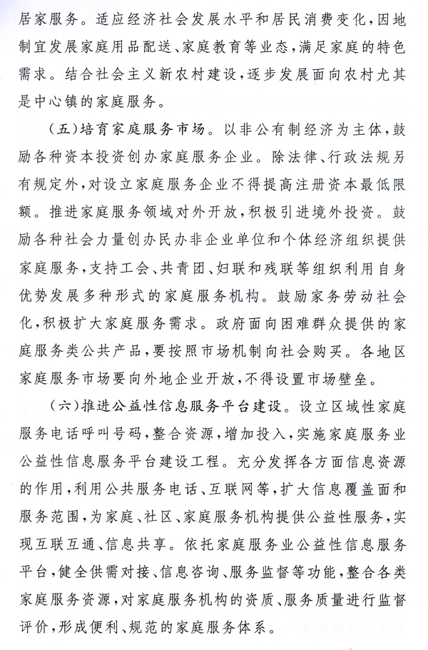 大力發(fā)展家庭服務(wù)業(yè),加快市場(chǎng)化、產(chǎn)業(yè)化和社會(huì)化,形成惠及城鄉(xiāng)居民的比較健全的家庭服務(wù)體系,有利于擴(kuò)大內(nèi)需、增加就業(yè)、改善民生,對(duì)于提高人民生活質(zhì)量、促進(jìn)社會(huì)和諧、全面建設(shè)小康社會(huì)具有重要作用。各地、各有關(guān)部門要高度重視,按照國(guó)辦發(fā)〔2010〕43號(hào)文提出的要求,完善和落實(shí)各項(xiàng)政策措施,大力推動(dòng)家庭服務(wù)業(yè)健康發(fā)展。省人力資源社會(huì)保障廳要會(huì)同有關(guān)部門,抓緊研究制訂我省“十二五”時(shí)期家庭服務(wù)業(yè)發(fā)展規(guī)劃,起草貫徹落實(shí)國(guó)辦發(fā)〔2010〕43號(hào)文的具體實(shí)施意見,報(bào)省政府批準(zhǔn)后組織實(shí)施。各地要在摸清本地區(qū)家庭服務(wù)業(yè)發(fā)展現(xiàn)狀的基礎(chǔ)上,結(jié)合實(shí)際制訂出臺(tái)扶持家庭服務(wù)業(yè)發(fā)展的配套政策措施。