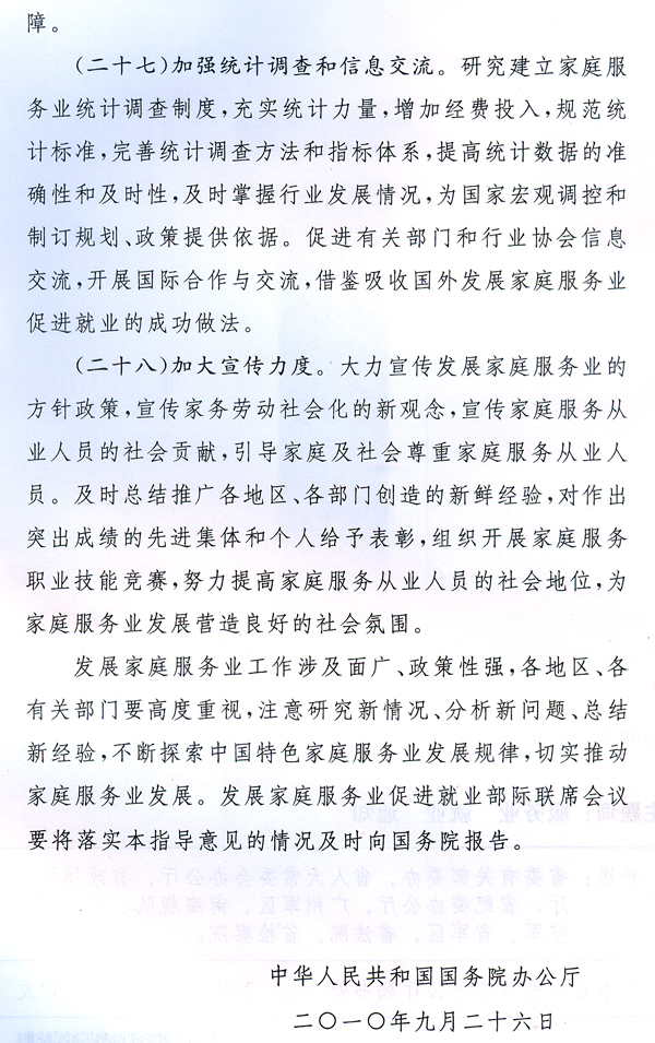 轉(zhuǎn)發(fā)國(guó)務(wù)院辦公廳關(guān)于發(fā)展家庭服務(wù)業(yè)