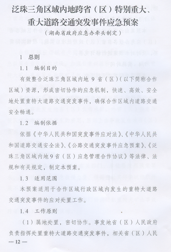 ? 轉(zhuǎn)發(fā)泛珠三角區(qū)域內(nèi)地9?。▍^(qū))應(yīng)急管理 合作聯(lián)席會(huì)議秘書處關(guān)于印發(fā)泛珠三角 區(qū)域內(nèi)地跨省(區(qū))特別重大、 重大礦山事故救援應(yīng)急預(yù)案 等應(yīng)急預(yù)案的函的通知 ? 韶關(guān)、河源、梅州、湛江、茂名、肇慶、清遠(yuǎn)、潮州、云浮市人民政府,省應(yīng)急委成員單位: 根據(jù)省政府領(lǐng)導(dǎo)同志意見,現(xiàn)將泛珠三角區(qū)域內(nèi)地9?。▍^(qū))應(yīng)急管理合作聯(lián)席會(huì)議秘書處《關(guān)于印發(fā)泛珠三角區(qū)域內(nèi)地跨?。▍^(qū))特別重大、重大礦山事故救援應(yīng)急預(yù)案等應(yīng)急預(yù)案的函》轉(zhuǎn)發(fā)給你們,請(qǐng)結(jié)合《廣東省突發(fā)事件應(yīng)對(duì)條例》有關(guān)規(guī)定,抓好貫徹落實(shí)。執(zhí)行中遇到的問題,請(qǐng)徑與省政府應(yīng)急辦聯(lián)系。 ? ? ? 廣東省人民政府辦公廳 二○一一年四月二十五日 ? ? ?