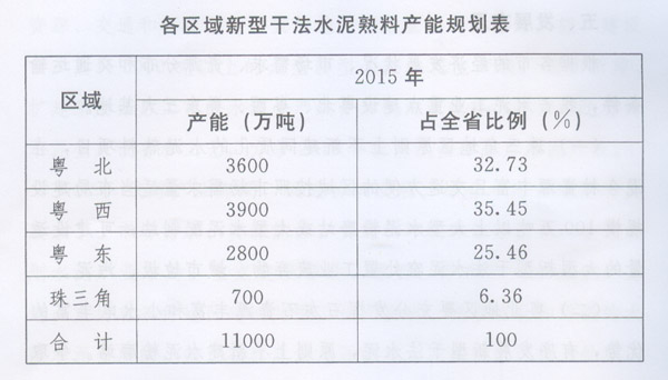 ?。ㄋ模┗洊|地區(qū)要進一步加強資源地質(zhì)勘探工作,加快新型干法水泥項目的建設(shè),盡快形成“粵東水泥生產(chǎn)基地”。在石灰石資源緊缺的潮州、揭陽、汕頭、汕尾等市,適度建設(shè)大型水泥粉磨站。爭取到2015年底前,新型干法水泥熟料產(chǎn)能達到2800萬噸左右,占全省比重的25.46%。