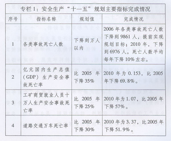 印發(fā)廣東省安全生產(chǎn)“十二五”規(guī)劃的通知 ? 各地級以上市人民政府,各縣(市、區(qū))人民政府,省政府各部門、各直屬機構(gòu): 《廣東省安全生產(chǎn)“十二五”規(guī)劃》已經(jīng)省人民政府同意,現(xiàn)印發(fā)給你們,請認(rèn)真貫徹執(zhí)行。執(zhí)行中遇到的問題,請徑向省安全監(jiān)管局、發(fā)展改革委反映。 ? ? ? ? ? 廣東省人民政府辦公廳 二○一一年六月十三日 ? ? ? ? ? 廣東省安全生產(chǎn)“十二五”規(guī)劃 ? ? 目 錄 ? 前 言 …………………………………………………………………………(1) 一、發(fā)展條件 …………………………………………………………………(2) ?。ㄒ唬┌l(fā)展基礎(chǔ)? ………………………………………………………………(2) (二)發(fā)展環(huán)境? ? ………………………………………………………………(4) 二、總體要求 ………………………………………………………………(6) ?。ㄒ唬┲笇?dǎo)思想 ? ?………………………………………………………………(6) (二)規(guī)劃目標(biāo) ………………………………………………………………(7) 三、主要任務(wù) …………………………………………………………………(9) ?。ㄒ唬娀攸c行業(yè)(領(lǐng)域)管理 ……………………………………………(9) (二)加強職業(yè)危害監(jiān)督管理…………………………………………………(14) ?。ㄈ┩晟茟?yīng)急救援體系建設(shè)…………………………………………………(15) (四)促進企業(yè)落實主體責(zé)任…………………………………………………(16) ?。ㄎ澹┨嵘O(jiān)管監(jiān)察執(zhí)法能力…………………………………………………(16) ?。┐罅嵤┛萍寂d安戰(zhàn)略…………………………………………………(18) ?。ㄆ撸┰鷮嵧七M安全文化建設(shè)…………………………………………………(19) 四、重點工程 …………………………………………………………………(20) ?。ㄒ唬┍O(jiān)管監(jiān)察執(zhí)法能力建設(shè)工程……………………………………………(20) (二)技術(shù)支撐體系建設(shè)工程…………………………………………………(20) ?。ㄈ?yīng)急救援體系建設(shè)工程…………………………………………………(21) (四)事故隱患治理工程………………………………………………………(21) ?。ㄎ澹┞殬I(yè)危害防控工程………………………………………………………(22) (六)安全文化與教育培訓(xùn)建設(shè)工程…………………………………………(22) ?。ㄆ撸┦『I纤丫戎笓]平臺與基地建設(shè)工程…………………………………(22) 五、保障措施 …………………………………………………………………(22) (一)堅持安全生產(chǎn)與經(jīng)濟社會協(xié)調(diào)發(fā)展……………………………………(22) ?。ǘ┮?guī)范安全生產(chǎn)法治秩序…………………………………………………(23) (三)嚴(yán)格目標(biāo)考核與責(zé)任追究………………………………………………(24) ?。ㄋ模┩晟瓢踩a(chǎn)投入機制…………………………………………………(25) (五)加強社會監(jiān)督和輿論監(jiān)督………………………………………………(25) ?。娀?guī)劃實施與評估考核………………………………………………(26) ? 前 言 ? 廣東是我國改革開放的前沿陣地,是全國探索科學(xué)發(fā)展模式的試驗區(qū)和深化改革的先行區(qū)。“十二五”時期是廣東全面建設(shè)小康社會的關(guān)鍵時期,是深化改革開放、加快轉(zhuǎn)變經(jīng)濟發(fā)展方式的攻堅時期,促進安全生產(chǎn)工作全面發(fā)展、實現(xiàn)安全生產(chǎn)狀況根本好轉(zhuǎn)至關(guān)重要。 省委、省政府歷來高度重視安全生產(chǎn)工作。2006年以來,全省各級安全生產(chǎn)工作部門圍繞省委、省政府各項工作部署和《廣東省安全生產(chǎn)“十一五”規(guī)劃》確定的目標(biāo)和任務(wù),全力推進安全生產(chǎn)工作,全省安全生產(chǎn)形勢明顯好轉(zhuǎn)?!笆濉睍r期,隨著我省經(jīng)濟結(jié)構(gòu)戰(zhàn)略性調(diào)整和經(jīng)濟發(fā)展方式加快轉(zhuǎn)變,安全生產(chǎn)工作將面臨新形勢、新任務(wù)和新特點。科學(xué)編制和有效實施安全生產(chǎn)“十二五”規(guī)劃,對于堅持科學(xué)發(fā)展,構(gòu)建和諧社會,促進安全生產(chǎn)狀況根本好轉(zhuǎn),推動安全生產(chǎn)與經(jīng)濟社會協(xié)調(diào)發(fā)展具有十分重大的意義。 本規(guī)劃根據(jù)《廣東省國民經(jīng)濟和社會發(fā)展第十二個五年規(guī)劃綱要》編制,是廣東省“十二五”重點專項規(guī)劃,是全省安全生產(chǎn)工作的戰(zhàn)略性、綱領(lǐng)性、綜合性規(guī)劃,是各地政府、各有關(guān)部門和企業(yè)履行安全生產(chǎn)職責(zé)的重要依據(jù)。 一、發(fā)展條件 ?。ㄒ唬┌l(fā)展基礎(chǔ)。 “十一五”時期,我省的安全生產(chǎn)工作取得重大進展,安全生產(chǎn)形勢明顯好轉(zhuǎn),為實現(xiàn)安全生產(chǎn)狀況根本好轉(zhuǎn)奠定了堅實基礎(chǔ)。 1.“十一五”規(guī)劃目標(biāo)全面完成。2006-2010年,全省生產(chǎn)安全事故四項主要指標(biāo)均有較大幅度下降,重特大事故發(fā)生起數