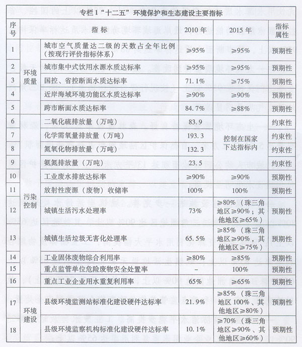 印發(fā)廣東省環(huán)境保護(hù)和生態(tài)建設(shè) “十二五”規(guī)劃的通知 ? 各地級(jí)以上市人民政府,各縣(市、區(qū))人民政府,省政府各部門、各直屬機(jī)構(gòu): 《廣東省環(huán)境保護(hù)和生態(tài)建設(shè)“十二五”規(guī)劃》業(yè)經(jīng)省人民政府同意,現(xiàn)印發(fā)給你們,請(qǐng)認(rèn)真組織實(shí)施。實(shí)施中遇到的問題,請(qǐng)徑向省環(huán)境保護(hù)廳、發(fā)展改革委反映。 ? ? ? ? 廣東省人民政府辦公廳 二○一一年七月二十八日 ? ? ? ? ? 廣東省環(huán)境保護(hù)和生態(tài)建設(shè) “十二五”規(guī)劃 ? ? 目 錄 ? 一、現(xiàn)狀、機(jī)遇與挑戰(zhàn)………………………………………………(1) ?。ㄒ唬笆晃濉杯h(huán)保工作取得的成效………………………………(1) ?。ǘ笆濉杯h(huán)保工作面臨的機(jī)遇與挑戰(zhàn)………………………(4) 二、指導(dǎo)思想、原則及目標(biāo)…………………………………………(7) ?。ㄒ唬┲笇?dǎo)思想…………………………………………………………(7) ?。ǘ┗驹瓌t…………………………………………………………(7) (三)主要目標(biāo)…………………………………………………………(8) 三、強(qiáng)化環(huán)境調(diào)控,促進(jìn)綠色發(fā)展…………………………………(11) ?。ㄒ唬┓謪^(qū)引導(dǎo),優(yōu)化產(chǎn)業(yè)布局………………………………………(11) ?。ǘp排倒逼,促進(jìn)產(chǎn)業(yè)結(jié)構(gòu)轉(zhuǎn)型升級(jí)……………………………(12) ?。ㄈ┚G色提升,構(gòu)建環(huán)境友好型產(chǎn)業(yè)體系…………………………(14) 四、加強(qiáng)綜合治理,改善環(huán)境質(zhì)量…………………………………(15) (一)統(tǒng)籌管理,推進(jìn)水環(huán)境質(zhì)量持續(xù)好轉(zhuǎn)…………………………(15) ?。ǘ┞?lián)防聯(lián)控,改善大氣環(huán)境質(zhì)量…………………………………(18) ?。ㄈ┤瘫O(jiān)管,加強(qiáng)重金屬污染綜合防治…………………………(22) (四)提升能力,確保固體廢物安全處置……………………………(24) ?。ㄎ澹?qiáng)化管理,改善聲環(huán)境質(zhì)量……………………………………(26) 五、加強(qiáng)農(nóng)村生態(tài)保護(hù),構(gòu)建生態(tài)安全屏障………………………(26) ?。ㄒ唬┏青l(xiāng)統(tǒng)籌,提高農(nóng)村環(huán)境保護(hù)水平……………………………(26) (二)試點(diǎn)示范,強(qiáng)化土壤環(huán)境保護(hù)…………………………………(28) ?。ㄈ┍SY(jié)合,構(gòu)筑生態(tài)安全格局…………………………………(29) 六、強(qiáng)化風(fēng)險(xiǎn)防控,確保環(huán)境安全…………………………………(32) ?。ㄒ唬?qiáng)化重點(diǎn)污染源風(fēng)險(xiǎn)防控………………………………………(32) ?。ǘ┍U虾伺c輻射環(huán)境安全…………………………………………(32) ?。ㄈ┘訌?qiáng)環(huán)境風(fēng)險(xiǎn)應(yīng)急管理…………………………………………(33) 七、加強(qiáng)能力建設(shè),全面提升環(huán)境監(jiān)管水平………………………(34) ?。ㄒ唬┘訌?qiáng)環(huán)境監(jiān)測預(yù)警能力建設(shè)……………………………………(34) (二)提升環(huán)境執(zhí)法監(jiān)督能力…………………………………………(36) ?。ㄈ┨岣吆伺c輻射安全監(jiān)管能力……………………………………(37) ?。ㄋ模┨嵘h(huán)境信息化水平……………………………………………(37) ?。ㄎ澹┘訌?qiáng)環(huán)境宣教能力建設(shè)…………………………………………(38) 八、創(chuàng)新機(jī)制與政策,提升環(huán)境保護(hù)綜合管理水平 ……………(38) (一)提高環(huán)保綜合決策與協(xié)調(diào)能力…………………………………(38) ?。ǘ┩七M(jìn)環(huán)保法規(guī)體系建設(shè)…………………………………………(39) (三)健全環(huán)境經(jīng)濟(jì)激勵(lì)機(jī)制…………………………………………(40) ?。ㄋ模┨嵘萍贾文芰Γ七M(jìn)環(huán)保產(chǎn)業(yè)發(fā)展………………………(41) ?。ㄎ澹?qiáng)化公眾環(huán)保意識(shí),發(fā)揮環(huán)保社會(huì)監(jiān)督作用…………………(42) ?。┘訌?qiáng)環(huán)保合作交流………………………………………………(44) 九、實(shí)施重點(diǎn)工程,落實(shí)規(guī)劃任務(wù)…………………………………(45) 十、規(guī)劃實(shí)施保障 ……………………………………………………(45) (一)加強(qiáng)組織領(lǐng)導(dǎo)……………………………………………………(45) ?。ǘ┓纸饴鋵?shí)任務(wù)……………………………………………………(46) ?。ㄈ?qiáng)化評(píng)估考核……………………………………………………(46) 附表1水污染防治重點(diǎn)工程……………………………………………(47) 附表2大氣污染防治重點(diǎn)工程…………………………………………(53) 附表3農(nóng)村環(huán)境保護(hù)重點(diǎn)工程…………………………………………(56) 附表4固體廢物處理處置重點(diǎn)工程……………………………………(59) 附表5生態(tài)建設(shè)重點(diǎn)工程………………………………………………(63) 附表6核與輻射安全保障