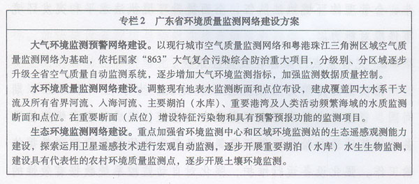 ? 3.提升環(huán)境應(yīng)急監(jiān)測能力。 按照國家環(huán)境應(yīng)急能力建設(shè)標(biāo)準(zhǔn)要求,全面提升省環(huán)境監(jiān)測中心和區(qū)域環(huán)境監(jiān)測站的應(yīng)急監(jiān)測能力,形成“以省級(jí)站為龍頭、區(qū)域站為骨干、市級(jí)站為支撐”的環(huán)境應(yīng)急監(jiān)測網(wǎng)絡(luò),建立完善上下聯(lián)動(dòng)、合作緊密的環(huán)境應(yīng)急監(jiān)測工作機(jī)制,打造一支應(yīng)急監(jiān)測快速反應(yīng)隊(duì)伍,增強(qiáng)各類環(huán)境突發(fā)事件的快速應(yīng)對(duì)能力,到2015年基本建成全方位、多層次、廣覆蓋的環(huán)境監(jiān)測預(yù)警體系。 (二)提升環(huán)境執(zhí)法監(jiān)督能力。 1.大力推進(jìn)環(huán)境監(jiān)察機(jī)構(gòu)標(biāo)準(zhǔn)化建設(shè)。 大力推進(jìn)各地特別是各縣(市、區(qū))環(huán)境監(jiān)察機(jī)構(gòu)能力建設(shè),到2015年,所有地級(jí)以上市環(huán)境監(jiān)察機(jī)構(gòu)實(shí)現(xiàn)全面達(dá)標(biāo),縣級(jí)環(huán)境監(jiān)察機(jī)構(gòu)標(biāo)準(zhǔn)化建設(shè)硬件達(dá)標(biāo)率達(dá)70%以上(其中珠江三角洲地區(qū)達(dá)90%以上,其他地區(qū)達(dá)60%以上)。大力開展環(huán)境監(jiān)察人員業(yè)務(wù)培訓(xùn),打造一支思想好、作風(fēng)正、懂業(yè)務(wù)、能戰(zhàn)斗、會(huì)管理的環(huán)境執(zhí)法隊(duì)伍,全面提升環(huán)境執(zhí)法水平和突發(fā)環(huán)境事件應(yīng)對(duì)能力。 2.完善重點(diǎn)污染源在線監(jiān)控系統(tǒng)。 推動(dòng)重點(diǎn)污染源在線監(jiān)控系統(tǒng)建設(shè),力爭在“十二五”期間國、省控重點(diǎn)污染源全部實(shí)現(xiàn)在線監(jiān)控,完成所有在線監(jiān)控設(shè)備的安裝改造和驗(yàn)收,做好氨氮和氮氧化物的在線監(jiān)測和數(shù)據(jù)傳輸工作,強(qiáng)化設(shè)備運(yùn)行維護(hù),強(qiáng)化對(duì)自動(dòng)監(jiān)控系統(tǒng)數(shù)據(jù)有效性的審核,推進(jìn)污染源自動(dòng)監(jiān)控設(shè)施社會(huì)化運(yùn)營。 3.加強(qiáng)機(jī)動(dòng)車污染監(jiān)管能力建設(shè)。 加快各地工況法檢測線和抽檢能力建設(shè),鼓勵(lì)有條件的城市開展遙測法抽檢。加快全省機(jī)動(dòng)車排氣檢測數(shù)據(jù)庫建設(shè),實(shí)現(xiàn)機(jī)動(dòng)車排氣檢測信息的互聯(lián)共享,為機(jī)動(dòng)車污染監(jiān)管提供支撐服務(wù)平臺(tái)。 4.加強(qiáng)固體廢物監(jiān)管能力建設(shè)。 完善固體廢物管理體系,鼓勵(lì)地級(jí)以上市設(shè)立專門的固體廢物管理機(jī)構(gòu),有條件的縣(市、區(qū))配備固體廢物管理專職人員,充實(shí)固體廢物管理隊(duì)伍。加快全省固體廢物管理信息系統(tǒng)的使用推廣,提高對(duì)固體廢物產(chǎn)生、收集、運(yùn)輸和處理處置全過程的信息化監(jiān)管水平。 ?。ㄈ┨岣吆伺c輻射安全監(jiān)管能力。 全面推進(jìn)省、市級(jí)核與輻射環(huán)境監(jiān)測、監(jiān)察能力建設(shè),到2015年,省環(huán)境輻射監(jiān)測中心達(dá)到全國先進(jìn)水平,珠海、韶關(guān)、江門、陽江等重點(diǎn)地區(qū)市級(jí)核與輻射環(huán)境監(jiān)測、監(jiān)察能力全面達(dá)標(biāo)。加快建設(shè)省控核與輻射在線自動(dòng)監(jiān)測網(wǎng)絡(luò),實(shí)現(xiàn)核與輻射環(huán)境監(jiān)測的自動(dòng)化和網(wǎng)絡(luò)化,提高監(jiān)測效率。加強(qiáng)對(duì)核電站毗鄰海域海洋環(huán)境中核與輻射監(jiān)測,重點(diǎn)加強(qiáng)省級(jí)和深圳、江門、陽江等市海洋環(huán)境核與輻射監(jiān)測能力建設(shè)。配套完善核事故后果評(píng)價(jià)和信息管理系統(tǒng)以及各類核與輻射基礎(chǔ)數(shù)據(jù)庫,全面提升核與輻射安全和應(yīng)急管理水平。 (四)提升環(huán)境信息化水平。 重點(diǎn)推進(jìn)縣級(jí)環(huán)境信息機(jī)構(gòu)標(biāo)準(zhǔn)化建設(shè)。到2015年,地級(jí)以上市環(huán)境信息機(jī)構(gòu)達(dá)標(biāo)率達(dá)90%,縣級(jí)環(huán)境信息機(jī)構(gòu)達(dá)標(biāo)率達(dá)60%以上,各地級(jí)以上市、縣(市、區(qū))全部實(shí)現(xiàn)聯(lián)網(wǎng),基本建成省市縣一體、功能完善、互聯(lián)互通、覆蓋全省的環(huán)境信息網(wǎng)絡(luò)平臺(tái)。加快推進(jìn)集環(huán)境質(zhì)量、污染減排、環(huán)境統(tǒng)計(jì)、污染源普查、建設(shè)項(xiàng)目審批、固體廢物管理等信息于一體的數(shù)據(jù)中心建設(shè),實(shí)現(xiàn)省與各地之間、各城市之間、各部門之間、政府與企業(yè)之間環(huán)境信息資源的共建共享。全面推進(jìn)省、市、縣三級(jí)主要環(huán)保業(yè)務(wù)管理的信息化,提升全省環(huán)境信息化服務(wù)整體水平。 (五)加強(qiáng)環(huán)境宣教能力建設(shè)。 加強(qiáng)環(huán)境宣教機(jī)構(gòu)特別是地級(jí)以上市環(huán)境宣教機(jī)構(gòu)的標(biāo)準(zhǔn)化建設(shè),逐步推進(jìn)縣級(jí)環(huán)境宣教隊(duì)伍建設(shè),到2015年,省級(jí)和80%的地級(jí)以上市宣教機(jī)構(gòu)達(dá)到標(biāo)準(zhǔn)化建設(shè)要求,縣級(jí)環(huán)境宣教隊(duì)伍建設(shè)達(dá)標(biāo)率達(dá)50%.加強(qiáng)環(huán)境保護(hù)職業(yè)技