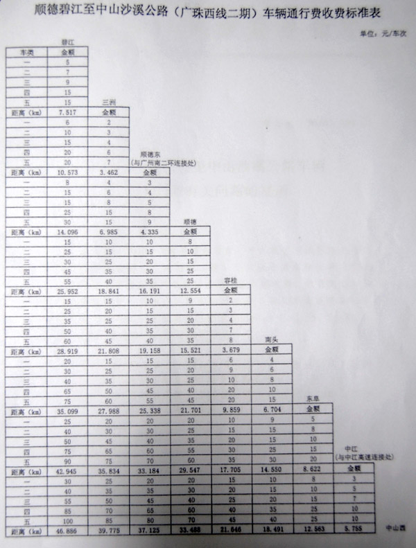 ? 關(guān)于順德碧江至中山沙溪公路車(chē)輛 通行費(fèi)有關(guān)問(wèn)題的復(fù)函