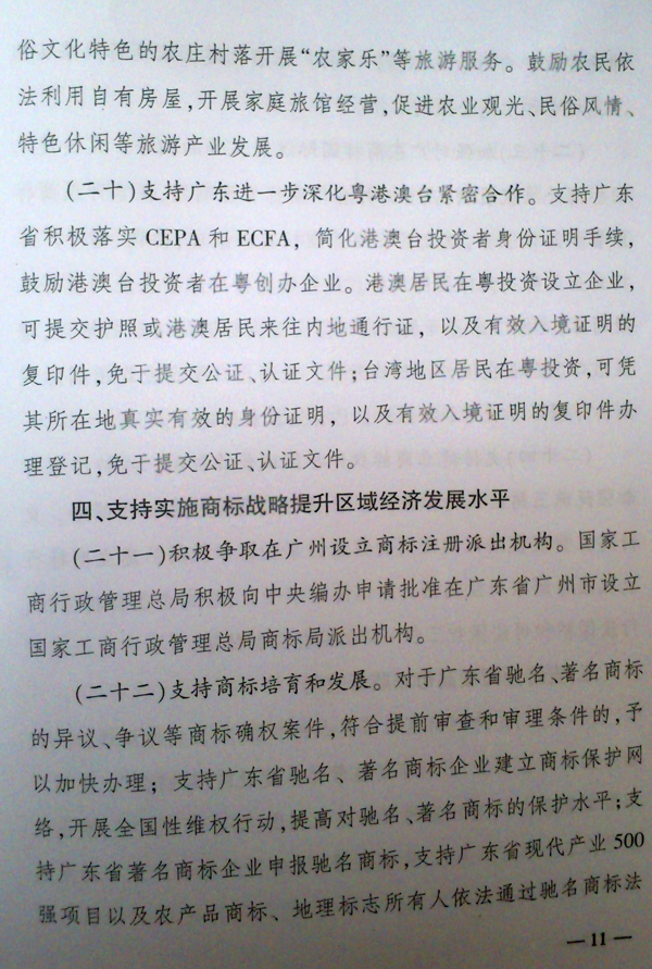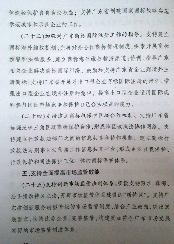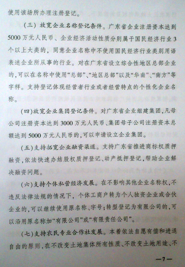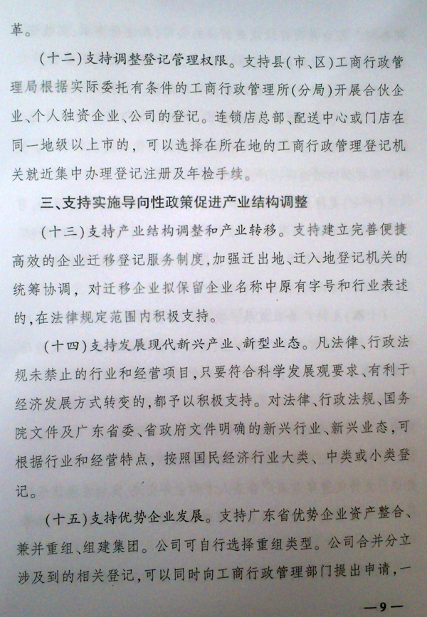 各地級(jí)以上市人民政府,各縣(市、區(qū))人民政府,省政府各部門(mén)、各直屬機(jī)構(gòu): 近日,國(guó)家工商總局印發(fā)了《關(guān)于支持廣東加快轉(zhuǎn)型升級(jí)建設(shè)幸福廣東的意見(jiàn)》(以下簡(jiǎn)稱(chēng)《意見(jiàn)》),提出了充分發(fā)揮工商行政管理職能支持我省改革發(fā)展的一系列政策措施。為認(rèn)真抓好《意見(jiàn)》的貫徹落實(shí),經(jīng)省人民政府同意,現(xiàn)將《意見(jiàn)》轉(zhuǎn)發(fā)給你們。同時(shí),提出以下要求,請(qǐng)一并貫徹執(zhí)行。 一、充分認(rèn)識(shí)《意見(jiàn)》出臺(tái)的重大意義。《意見(jiàn)》是國(guó)家工商總局站在支持廣東當(dāng)好推動(dòng)科學(xué)發(fā)展、促進(jìn)社會(huì)和諧的排頭兵,率先全面建成小康社會(huì)的戰(zhàn)略高度,主動(dòng)服務(wù)、積極服務(wù)、創(chuàng)造性服務(wù)地方的重大舉措?!兑庖?jiàn)》突出科學(xué)發(fā)展主題和轉(zhuǎn)變經(jīng)濟(jì)發(fā)展方式主線,以“寬入嚴(yán)管”為原則,對(duì)市場(chǎng)主體服務(wù)放得最寬、權(quán)力下放得最徹底、從重審批轉(zhuǎn)向重監(jiān)管措施最具體,包含了一批首創(chuàng)性政策,充分體現(xiàn)了解放思想、改革創(chuàng)新的要求,完全符合廣東的實(shí)際和發(fā)展需要。各地、各部門(mén)要充分認(rèn)識(shí)《意見(jiàn)》出臺(tái)的重大意義,把貫徹實(shí)施《意見(jiàn)》作為深化市場(chǎng)監(jiān)管體系建設(shè)、促進(jìn)經(jīng)濟(jì)平穩(wěn)健康可持續(xù)發(fā)展的重要任務(wù)擺上重要日程,切實(shí)抓緊抓好,抓出成效。 二、用足用好《意見(jiàn)》明確的政策措施?!兑庖?jiàn)》提出的5個(gè)方面32條具體措施,針對(duì)性強(qiáng)、支持力度大,工商行政管理部門(mén)要認(rèn)真抓好貫徹落實(shí)。要把國(guó)家工商總局下放的權(quán)限管好用好,把各項(xiàng)寬松登記管理政策落實(shí)到位,最大限度地方便企業(yè),促進(jìn)各類(lèi)市場(chǎng)主體加快發(fā)展;要本著先行先試的精神和有利于市場(chǎng)主體發(fā)展的原則,推進(jìn)工商登記管理體制機(jī)制改革創(chuàng)新,做好試點(diǎn)工作;要堅(jiān)持“寬入嚴(yán)管”統(tǒng)籌并重,加快完善市場(chǎng)監(jiān)管體系,全面提高市場(chǎng)監(jiān)管效能;要提高商標(biāo)工作水平,加大馳名商標(biāo)、著名商標(biāo)創(chuàng)建和保護(hù)力度,扎實(shí)推進(jìn)商標(biāo)品牌戰(zhàn)略實(shí)施;要認(rèn)真實(shí)施促進(jìn)產(chǎn)業(yè)結(jié)構(gòu)調(diào)整和轉(zhuǎn)型升級(jí)的導(dǎo)向性政策,支持我省構(gòu)建現(xiàn)代產(chǎn)業(yè)體系和深化改革、擴(kuò)大開(kāi)放。省工商局要制訂具體實(shí)施方案,明確分工和責(zé)任,用足用好國(guó)家工商總局的支持政策,加快構(gòu)建更加適應(yīng)我省經(jīng)濟(jì)社會(huì)發(fā)展需要的工商行政管理體制機(jī)制。 三、強(qiáng)化《意見(jiàn)》實(shí)施中的協(xié)作配合。各地、各有關(guān)部門(mén)要根據(jù)《意見(jiàn)》提出的任務(wù)措施,加強(qiáng)對(duì)《意見(jiàn)》實(shí)施的協(xié)作配合,加大對(duì)工商行政管理改革創(chuàng)新的支持力度。各級(jí)發(fā)展改革、經(jīng)濟(jì)和信息化、財(cái)政、教育、文化、農(nóng)業(yè)、林業(yè)、審計(jì)、監(jiān)察、質(zhì)監(jiān)、食品藥品監(jiān)管、法制、機(jī)構(gòu)編制等部門(mén)要結(jié)合各自職能,支持配合工商行政管理部門(mén)開(kāi)展改革試點(diǎn)、建設(shè)信息化監(jiān)管體系和廣告產(chǎn)業(yè)園區(qū)、推進(jìn)并聯(lián)審批、做好流通環(huán)節(jié)商品質(zhì)量監(jiān)管和消費(fèi)者權(quán)益保護(hù)等工作。承擔(dān)改革試點(diǎn)任務(wù)或項(xiàng)目建設(shè)的廣州、深圳、珠海、汕頭、惠州、東莞等市,要加強(qiáng)組織協(xié)調(diào),認(rèn)真開(kāi)展試點(diǎn)或相關(guān)配合工作,大膽探索,注意總結(jié),力爭(zhēng)早出成果、出好經(jīng)驗(yàn)。省工商局在落實(shí)各項(xiàng)改革創(chuàng)新任務(wù)措施的同時(shí),要發(fā)揮牽頭協(xié)調(diào)作用。 四、加快推進(jìn)政府職能轉(zhuǎn)變。各地、各部門(mén)要深刻領(lǐng)會(huì)貫穿《意見(jiàn)》始終的解放思想、改革創(chuàng)新的靈魂和精神實(shí)質(zhì),學(xué)習(xí)工商行政管理部門(mén)勇于探索、勇于突破、從改革自身做起的堅(jiān)定決心和勇氣,圍繞加快完善社會(huì)主義市場(chǎng)經(jīng)濟(jì)體制的根本目的,打破與市場(chǎng)機(jī)制不相適應(yīng)的部門(mén)權(quán)力利益格局,進(jìn)一步精簡(jiǎn)行政審批事項(xiàng),規(guī)范審批流程,加快制訂轉(zhuǎn)移職能目錄,更好地發(fā)揮市場(chǎng)配置資源的基礎(chǔ)性作用。要切實(shí)改變嚴(yán)準(zhǔn)入、寬監(jiān)管的傳統(tǒng)模式,加快向“寬準(zhǔn)入、嚴(yán)監(jiān)管”轉(zhuǎn)變,特別要結(jié)合當(dāng)前我省正在深入開(kāi)展的“三打兩建”工作,加強(qiáng)社會(huì)信用體系和市場(chǎng)監(jiān)管體系建設(shè),有力規(guī)范市場(chǎng)秩序。要強(qiáng)化公共服務(wù)職能,加強(qiáng)效能建設(shè),拓展服務(wù)領(lǐng)域,不斷提升服務(wù)水平,構(gòu)建更加符合我省市場(chǎng)