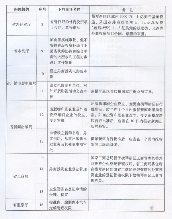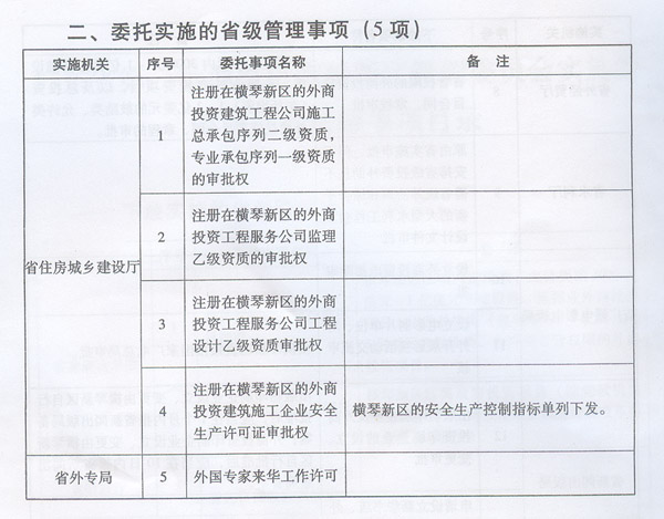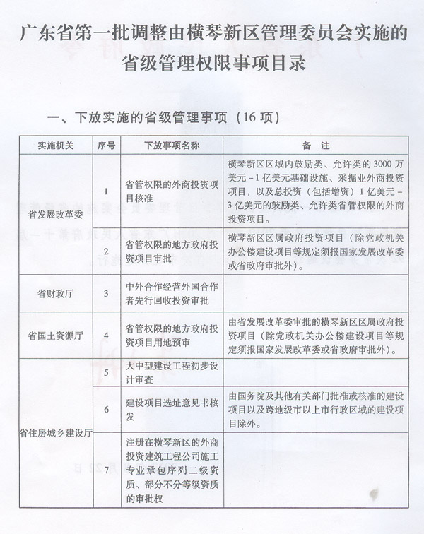 | 名稱: | 廣東省第一批調(diào)整由橫琴新區(qū)管理委員會(huì)實(shí)施的省級(jí)管理權(quán)限事項(xiàng)目錄 | ||
