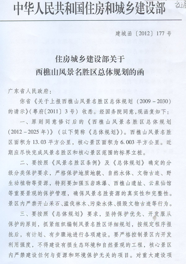 | 名稱: | 廣東省人民政府轉(zhuǎn)發(fā)住房城鄉(xiāng)建設部關于西樵山風景名勝區(qū)總體規(guī)劃的函的通知 | ||
