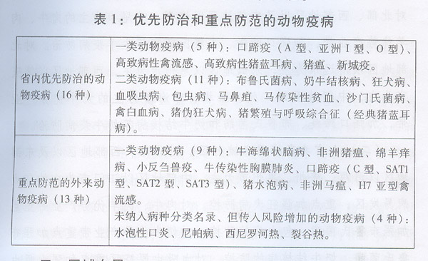 廣東省人民政府辦公廳關于印發(fā)《廣東省中長期 動物疫病防治規(guī)劃(2012—2020年)》的通知 ? 各地級以上市人民政府,各縣(市、區(qū))人民政府,省政府各部門、各直屬機構: 《廣東省中長期動物疫病防治規(guī)劃(2012—2020年)》已經(jīng)省人民政府同意,現(xiàn)印發(fā)給你們,請認真貫徹執(zhí)行。執(zhí)行過程中遇到的問題,請徑向省農業(yè)廳反映。 ? ? ? 廣東省人民政府辦公廳 2012年12月31日 ? ? ? 廣東省中長期動物疫病防治規(guī)劃 (2012—2020年) 動物疫病防治工作是保障食品安全、公共衛(wèi)生安全和人民群眾身體健康的重要基礎,對促進農業(yè)農村經(jīng)濟平穩(wěn)較快發(fā)展、維護社會和諧穩(wěn)定具有重要作用。為做好我省中長期動物疫病防治工作,加快建設幸福廣東和現(xiàn)代農業(yè)強省,根據(jù)《國家中長期動物疫病防治規(guī)劃(2012-2020年)》,結合我省實際,制定本規(guī)劃。 ? 一、我省動物疫病防治工作現(xiàn)狀和面臨的形勢 (一)動物疫病防治工作成效顯著。省委、省政府高度重視動物疫病防治工作。我省出臺了《廣東省動物防疫條例》,制定了《廣東省突發(fā)重大動物疫情應急預案》及強制免疫、監(jiān)測預警、檢疫監(jiān)督執(zhí)法等一系列規(guī)章制度,動物疫病防治工作步入法制化、規(guī)范化軌道。全面推進獸醫(yī)管理體制改革,構建了省、市、縣三級行政管理、監(jiān)督執(zhí)法和技術支撐體系,基層動物防疫網(wǎng)絡進一步完善,以官方獸醫(yī)、執(zhí)業(yè)獸醫(yī)為主體的新型獸醫(yī)制度加快建立,獸醫(yī)隊伍能力素質不斷提升。落實動物防疫責任制,開展量化考核,聯(lián)防聯(lián)控機制日趨健全。成功創(chuàng)建全國首個經(jīng)國際認可的無規(guī)定馬屬動物疫病區(qū),確保了廣州亞運會、深圳大運會動物產品安全。成功控制、撲滅了多起突發(fā)動物疫情,妥善應對自然災害,保障了畜產品有效供給和畜牧業(yè)健康發(fā)展。 (二)動物疫病防治工作任務艱巨。廣東是畜禽生產和消費大省,畜禽調運交易頻繁,在高溫濕潤的氣候條件和水網(wǎng)密集的地理環(huán)境下,發(fā)生嚴重動物疫情的隱患不容忽視。隨著畜牧業(yè)生產規(guī)模和養(yǎng)殖密度的不斷增大,畜禽感染病原機會增多,病原變異幾率加大,新發(fā)疫病風險增加。廣東毗鄰港澳,動物疫情敏感性強,社會關注度高。與此同時,動物疫病防治工作不少環(huán)節(jié)需進一步加強和改善。在條件保障方面,財政投入偏重于重大動物疫病防治,對經(jīng)濟損失嚴重的非重大動物疫病和野生動物疫源疫病防治的支持力度有待加大;在機構隊伍方面,一些地區(qū)的動物防疫網(wǎng)絡基礎設施、隊伍力量與防疫形勢不相適應的問題依然存在;在體制機制方面,動物疫病區(qū)域化管理、活畜禽跨區(qū)域調運、動物流通檢疫監(jiān)管方面的制度不夠完善,部分企業(yè)、協(xié)會、養(yǎng)殖者、執(zhí)業(yè)獸醫(yī)等相關防疫主體履行防疫義務尚不到位,按照動物疫病防治規(guī)律有計劃開展防治工作的長效機制亟待建立。 (三)動物疫病防治工作機遇良好。我國動物防疫工作全面融入世界動物防疫體系,國家中長期動物疫病防治規(guī)劃正式啟動,動物疫病防治正在從有效控制向逐步凈化消滅過渡,為動物疫病防治提供了更有利的宏觀環(huán)境;獸醫(yī)管理體制改革深入推進,新型獸醫(yī)制度全面實施,獸醫(yī)法規(guī)標準體系進一步健全,獸醫(yī)科技進步和自主創(chuàng)新能力不斷提升,為動物疫病防治提供了更有力的技術和人才支撐;傳統(tǒng)養(yǎng)殖業(yè)向現(xiàn)代養(yǎng)殖業(yè)加快轉型,公共財政投入力度不斷加大,為動物疫病防治提供了更有利的條件;與動物防疫相關的食品安全和公共衛(wèi)生問題日益受到全社會關注,為動物疫病防治營造了良好氛圍。 ? 二、總體要求和防治目標 (一)總體要求。以鄧小平理論、“三個代表”重要思想、科學發(fā)展觀為指導,堅持“預防為主”,以科學防控重大動物疫病和維護公共衛(wèi)生安全為主題,實施分病種、分區(qū)域、分階段的動物疫病防治策略,有計劃地控制、凈化和消滅嚴重危害養(yǎng)殖業(yè)生產和人民群眾健康的動物疫??;以轉變獸醫(yī)事業(yè)發(fā)展方式為主線,加強獸醫(yī)法制建設,健全獸醫(yī)機構和隊伍,不斷推進體制、機制和制度創(chuàng)新,形成政府、企業(yè)、行業(yè)協(xié)會和從業(yè)人員責任明確、各司其職的動物防疫體系;以強化動物疫病防控、動物產品安全監(jiān)管、突發(fā)獸醫(yī)衛(wèi)生事件應急處理等各項能力建設為重點,全面提升獸醫(yī)公共服務和社會化服務水平。 (二)防治目標。到2020年,形成與全面建設小康社會相適應,有效保障養(yǎng)殖業(yè)生產安全、動物產品質量安全和公共衛(wèi)生安全的動物疫病綜合防治能力??谔阋?、高致病性禽流感等16種優(yōu)先防治動物疫?。ū?)達到規(guī)劃設定的考核標準(表2),生豬、家禽、牛、羊發(fā)病率分別下降到5%、6%、4%、3%以下,動物發(fā)病率、死亡率和公共衛(wèi)生風險顯著降低。牛海綿狀腦病、非洲豬瘟等13種重點防范的外來動物疫?。ū?)傳入和擴散風險有效降低,防范和處置能力明顯提高。鴨瘟、小鵝瘟、豬乙型腦炎等動物疫病防控工作得到切實加