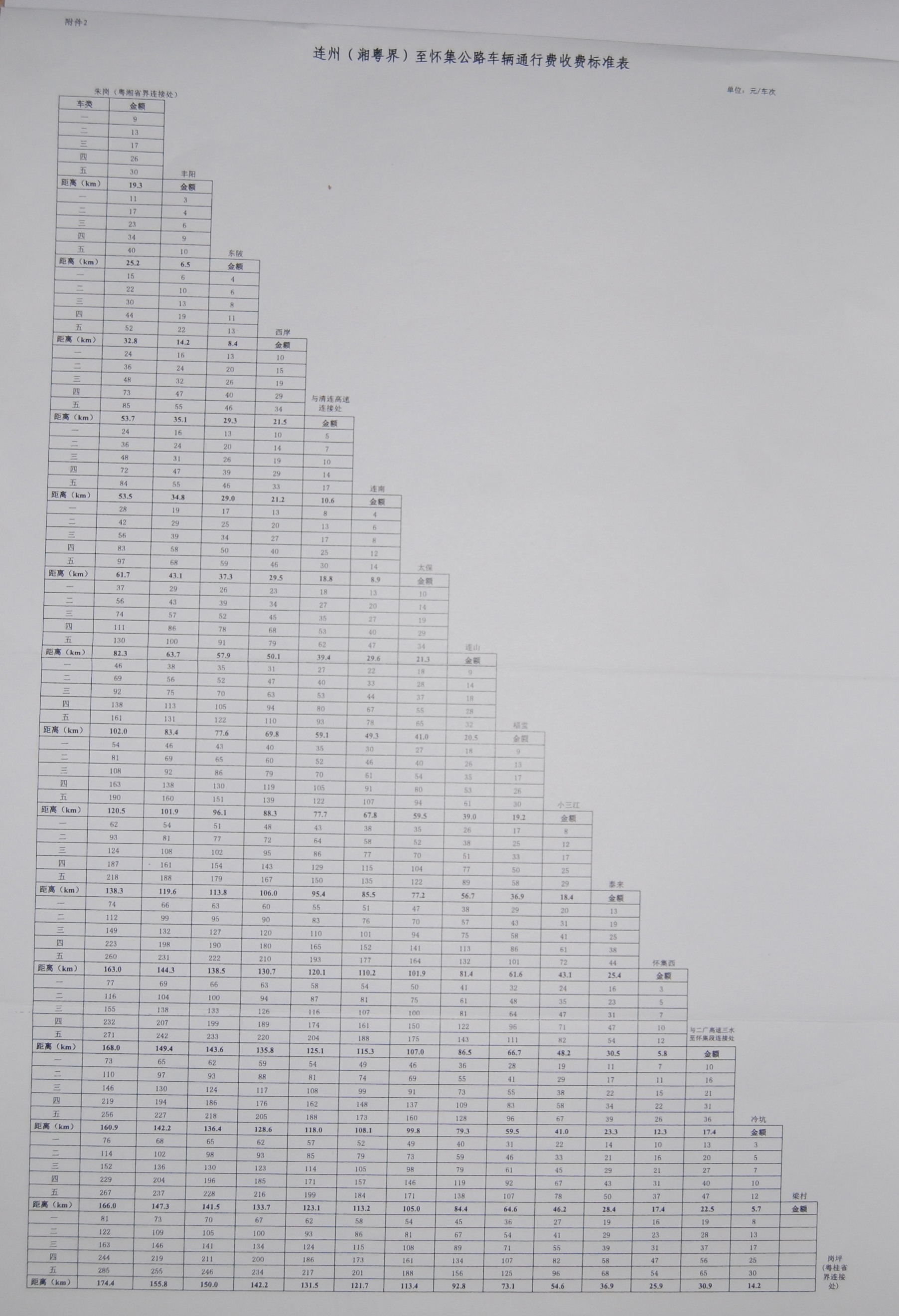 2.連州(湘粵界)至懷集公路車(chē)輛通行費(fèi)收費(fèi)標(biāo)準(zhǔn)表 ? ? ? ? 省府辦公廳 2013年11月19日 |