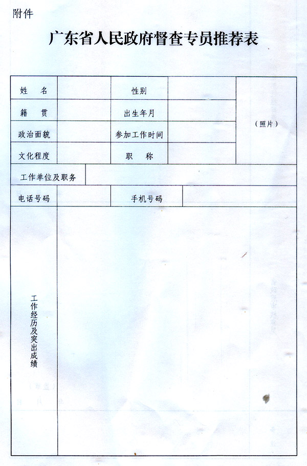 根據(jù)《廣東省人民政府辦公廳關(guān)于印發(fā)廣東省人民政府督查專員管理暫行辦法的通知》(粵府辦〔2015〕16號(hào)),省政府決定在部分省直部門中選聘第一批省政府督查專員。有關(guān)事項(xiàng)通知如下: 一、資格條件 ?。ㄒ唬┱瘟?chǎng)堅(jiān)定,全局意識(shí)強(qiáng); (二)敢于堅(jiān)持原則,善抓督查調(diào)研、協(xié)調(diào)落實(shí); ?。ㄈ┱邩I(yè)務(wù)熟悉,經(jīng)驗(yàn)豐富; ?。ㄋ模嵝恼讲楣ぷ?; ?。ㄎ澹┰瓌t上為58周歲以下巡視員、副巡視員。 ?。ㄒ唬└鞑块T擇優(yōu)推薦上報(bào)1名符合資格條件的省政府督查專員人選; ?。ǘ┦≌讲槭覍?duì)各部門上報(bào)的人選情況進(jìn)行匯總初審后,報(bào)省政府秘書長(zhǎng)審核; ?。ㄈ⑹≌貢L(zhǎng)審核通過的人選,依次報(bào)請(qǐng)省政府分管領(lǐng)導(dǎo)審批和主要領(lǐng)導(dǎo)審定; ?。ㄋ模┱桨l(fā)文公布第一批省政府督查專員名單,并頒發(fā)聘書; (五)省政府督查室于聘任后的15個(gè)工作日內(nèi),將聘任文件等資料抄送督查專員所在單位人事部門備案。 建立省政府督查專員制度是進(jìn)一步構(gòu)建“大督查”工作格局,推動(dòng)省委、省政府決策部署落實(shí)的重要舉措,各單位要高度重視,認(rèn)真做好第一批省政府督查專員推薦工作。推薦人選名單及《省政府督查專員推薦表》(見附件,一式兩份)請(qǐng)于3月27日前送省政府督查室。 ? ? 省府辦公廳 2015年3月17日 ? ?。?lián)系人:曾燦,聯(lián)系電話:83138413,傳真:83132739) ? ?