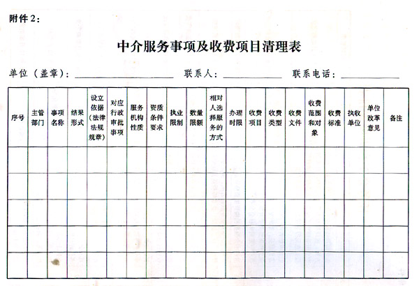 2.中介服務(wù)事項及收費項目清理表及填表說明