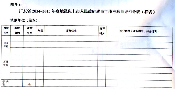3.廣東省2014-2015年度地級(jí)以上市人民政府質(zhì)量工作考核自評(píng)打分表(樣表)