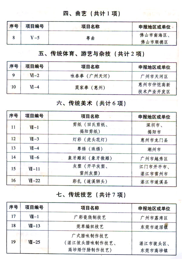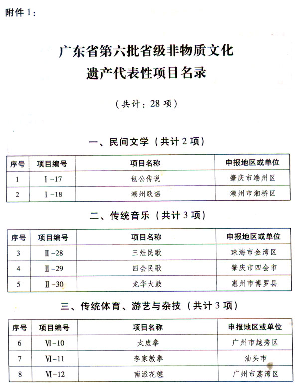 ? 廣東省人民政府關(guān)于批準(zhǔn)并公布廣東省 第六批省級(jí)非物質(zhì)文化遺產(chǎn)名錄的通知