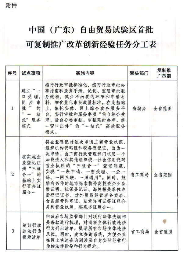 ? 廣東省人民政府關(guān)于復(fù)制推廣中國(廣東) 自由貿(mào)易試驗區(qū)首批改革創(chuàng)新經(jīng)驗的通知