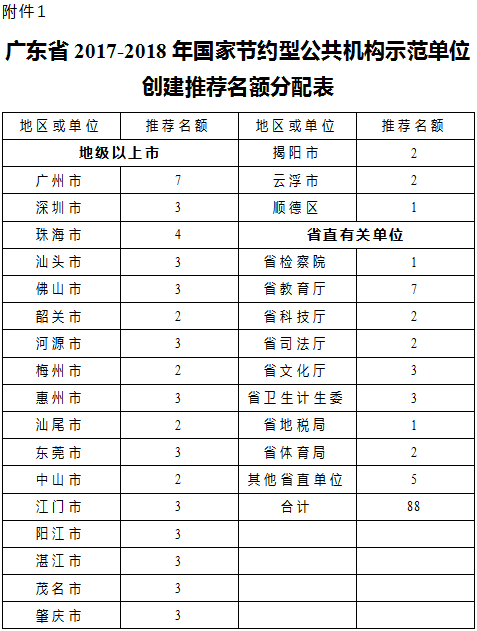 附件:1.廣東省2017-2018年國(guó)家節(jié)約型公共機(jī)構(gòu)示范單位創(chuàng)建推薦名額分配表