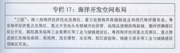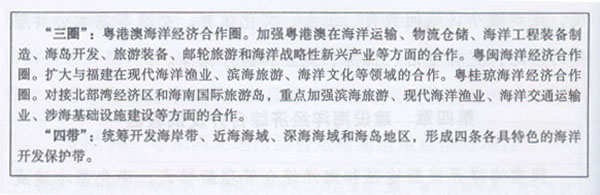 ? 第四節(jié) 加大扶貧開發(fā)力度 全面推進扶貧開發(fā)“規(guī)劃到戶、責(zé)任到人”工作。加大扶貧投入,強化財政金融支持,有效整合扶貧資金,鼓勵社會力量積極參與。深入推進開發(fā)式扶貧,大力推進產(chǎn)業(yè)、教育、科技、旅游、搬遷等扶貧。積極開展貧困戶就業(yè)培訓(xùn)和貧困戶子女免費技能培訓(xùn),著力提高貧困地區(qū)、貧困人口的收入水平和自我發(fā)展能力。有序開展移民扶貧。加大對原中央蘇區(qū)縣等革命老區(qū)和邊遠山區(qū)、少數(shù)民族地區(qū)基礎(chǔ)設(shè)施建設(shè)和經(jīng)濟發(fā)展的支持力度。 第五節(jié) 促進區(qū)域基本公共服務(wù)均等化 把實現(xiàn)區(qū)域間基本公共服務(wù)均等化作為區(qū)域協(xié)調(diào)發(fā)展的主要目標(biāo)。在增強欠發(fā)達地區(qū)自我發(fā)展能力的同時,加大省級財政轉(zhuǎn)移支付力度,加強民生、社會事業(yè)建設(shè),建立多元化的供給制度,逐步縮小區(qū)域間教育、衛(wèi)生、文化體育、交通等基本公共服務(wù)的差距,完善生活、住房、就業(yè)和醫(yī)療保障。 ? 第四章 建設(shè)海洋經(jīng)濟綜合開發(fā)試驗區(qū) ? 探索海洋開發(fā)新途徑和海洋綜合管理新模式,率先基本建成海洋強省,爭當(dāng)全國海洋事業(yè)科學(xué)發(fā)展的排頭兵。 第一節(jié) 優(yōu)化海洋開發(fā)空間布局 加快編制廣東省海洋主體功能區(qū)規(guī)劃,優(yōu)化海洋經(jīng)濟空間布局,規(guī)范海洋開發(fā)利用秩序,深化港口岸線資源整合,實現(xiàn)海岸、海域的合理開發(fā)和可持續(xù)利用。著力建設(shè)珠三角海洋經(jīng)濟優(yōu)化發(fā)展區(qū),粵東、粵西海洋經(jīng)濟重點發(fā)展區(qū),積極構(gòu)建粵港澳、粵閩、粵桂瓊?cè)蠛Q蠼?jīng)濟合作圈,科學(xué)統(tǒng)籌海岸帶、近海海域、深海海域和海島地區(qū)四個海洋保護開發(fā)帶,推進形成“三區(qū)、三圈、四帶”的海洋綜合開發(fā)新格局。推進海洋經(jīng)濟發(fā)展試點省建設(shè),建設(shè)成為提升我國海洋經(jīng)濟國際競爭力的核心區(qū)和全國海洋生態(tài)文明建設(shè)的示范區(qū)。
