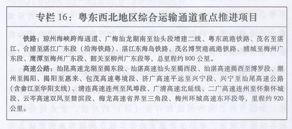 ? 第三章 促進粵東西北地區(qū)跨越發(fā)展 ? 充分發(fā)揮基礎(chǔ)設(shè)施建設(shè)的支撐帶動作用,創(chuàng)新發(fā)展模式,優(yōu)化產(chǎn)業(yè)布局,加快提升發(fā)展水平和層次,形成環(huán)珠三角經(jīng)濟快速增長帶。 第一節(jié) 深入實施“雙轉(zhuǎn)移”戰(zhàn)略 充分發(fā)揮珠三角地區(qū)的輻射、服務(wù)和帶動功能,促進產(chǎn)業(yè)轉(zhuǎn)移,形成梯度發(fā)展、分工合理的多層次產(chǎn)業(yè)群和優(yōu)勢互補、互利共贏的產(chǎn)業(yè)協(xié)作體系。辦好產(chǎn)業(yè)轉(zhuǎn)移工業(yè)園,支持珠三角與粵東西北地區(qū)開展多種形式的產(chǎn)業(yè)轉(zhuǎn)移與合作,提升產(chǎn)業(yè)轉(zhuǎn)移園區(qū)建設(shè)水平,形成一批示范帶動作用強的區(qū)域增長極。重點推進汕尾、陽江等沿海地區(qū)形成重大產(chǎn)業(yè)集聚區(qū),清遠、云浮、韶關(guān)、梅州、河源等山區(qū)市形成若干專業(yè)集聚區(qū),支持辦好“深圳—汕尾特別合作區(qū)”和“廣東順德(英德)產(chǎn)業(yè)園”。完善粵東西北地區(qū)與珠三角各市勞務(wù)合作機制,共建農(nóng)村勞動力培訓(xùn)轉(zhuǎn)移就業(yè)示范基地,促進勞動力轉(zhuǎn)移?!笆濉逼陂g,省產(chǎn)業(yè)轉(zhuǎn)移工業(yè)園區(qū)域帶動能力進一步增強,轉(zhuǎn)移農(nóng)村勞動力就業(yè)300萬人。 第二節(jié) 構(gòu)建東西兩翼沿海經(jīng)濟帶 把發(fā)展海洋經(jīng)濟作為推動?xùn)|西兩翼沿海地區(qū)跨越發(fā)展的重要引擎。加快建設(shè)以石化、鋼鐵、船舶制造、能源生產(chǎn)為主的沿海重化產(chǎn)業(yè)帶,發(fā)展特色經(jīng)濟、海洋經(jīng)濟和現(xiàn)代農(nóng)業(yè),建設(shè)成為我國乃至世界級的重化工業(yè)基地和物流基地、新能源產(chǎn)業(yè)基地、海洋經(jīng)濟發(fā)展示范區(qū)、現(xiàn)代農(nóng)業(yè)示范區(qū),成為全省新的經(jīng)濟增長極。以基礎(chǔ)設(shè)施一體化為先導(dǎo),強化區(qū)域內(nèi)部基礎(chǔ)設(shè)施統(tǒng)籌銜接,加強與珠三角和周邊相鄰?。▍^(qū))的對接,重點建設(shè)沿海綜合運輸主通道。支持促進粵東經(jīng)濟一體化和提升粵西區(qū)域合作水平,加快“汕潮揭”城市群建設(shè)和“湛茂陽”經(jīng)濟圈發(fā)展。促進粵東地區(qū)與海峽西岸經(jīng)濟區(qū)、粵西地區(qū)與北部灣經(jīng)濟區(qū)的融合發(fā)展,強化粵東對臺及東盟經(jīng)貿(mào)交流合作,粵西參與大西南和東盟等區(qū)域合作。 第三節(jié) 打造粵北生態(tài)特色經(jīng)濟新區(qū) 充分發(fā)揮粵北地區(qū)的資源優(yōu)勢,把借力發(fā)展與提升自身發(fā)展能力緊密結(jié)合起來,實行“面上保護、點上開發(fā)”,積極承接產(chǎn)業(yè)轉(zhuǎn)移,走特色發(fā)展、生態(tài)發(fā)展道路,實現(xiàn)綠色崛起,建設(shè)成為具有嶺南生態(tài)特色的經(jīng)濟新區(qū)和廣東最重要的生態(tài)屏障。著力推進特色優(yōu)勢資源產(chǎn)業(yè)化,培育環(huán)境友好型產(chǎn)業(yè),發(fā)展現(xiàn)代農(nóng)業(yè)和生態(tài)旅游,建設(shè)我省特色制造業(yè)集聚區(qū)和珠三角先進制造業(yè)配套基地,創(chuàng)造條件發(fā)展高技術(shù)產(chǎn)業(yè)。支持生態(tài)發(fā)展區(qū)域向珠三角地區(qū)提供優(yōu)質(zhì)源水、農(nóng)產(chǎn)品。進一步加大以交通為重點的基礎(chǔ)設(shè)施建設(shè)的扶持力度,重點建設(shè)京港澳綜合運輸主通道等基礎(chǔ)設(shè)施,增強對山區(qū)發(fā)展的支撐能力。加強北部山區(qū)與周邊省份的經(jīng)濟協(xié)作。