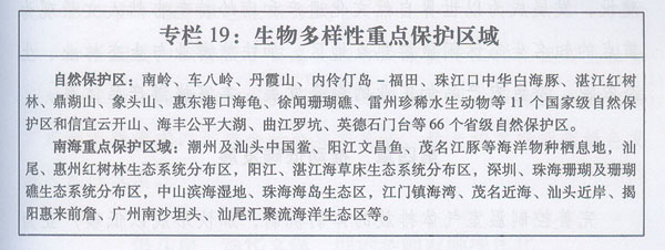 ? 第三章 推進生態(tài)建設(shè) ? 堅持保護優(yōu)先,加大生態(tài)保護和建設(shè)力度,全面維護生物多樣性,加快建設(shè)高水平旅游集聚區(qū),促進生態(tài)環(huán)境的持續(xù)改善。 第一節(jié) 大力構(gòu)建生態(tài)安全屏障 逐步提高生態(tài)公益林補償標(biāo)準(zhǔn),加大生態(tài)公益林建設(shè)和保護力度,綜合治理水土流失,構(gòu)建“兩屏、一帶、一網(wǎng)”①的生態(tài)安全戰(zhàn)略格局。加強重點飲用水源地、生物敏感區(qū)、濕地的治理保護,加快建設(shè)沿江沿海防護林及水源涵養(yǎng)林等帶狀生態(tài)工程,推進林相改造和林種結(jié)構(gòu)調(diào)整。加強森林撫育與管理,擴大森林面積,提高森林質(zhì)量,增加森林碳匯。加強森林生態(tài)監(jiān)測。擴大巖溶地區(qū)石漠化綜合治理范圍,加大礦山地質(zhì)環(huán)境恢復(fù)治理力度。全面推進生態(tài)文明萬村綠行動,建設(shè)城市景觀林、公共綠地和城(鎮(zhèn))郊圍城防護綠化帶,維護農(nóng)田保護區(qū)、農(nóng)田林網(wǎng)等綠色開敞空間。以珠三角綠道網(wǎng)為依托,逐步構(gòu)建全省互聯(lián)互通的綠道網(wǎng),使之成為推進生態(tài)文明建設(shè)的標(biāo)志性工程。開展全國生態(tài)文明試點和林業(yè)生態(tài)縣建設(shè),加快建設(shè)林業(yè)生態(tài)省和現(xiàn)代林業(yè)強省。 第二節(jié) 全面維護生物多樣性 堅持以物種就地保護為主,加強自然保護區(qū)、濕地和森林公 ———————— ①“兩屏”,指廣東北部環(huán)形生態(tài)屏障和珠三角外圍生態(tài)屏障:“一帶”,指藍色海岸帶:“一網(wǎng)”,指以西江、北江、東江、韓江、鑒江以及綠道網(wǎng)為主體的生態(tài)廊道網(wǎng)絡(luò)。 ? 園建設(shè)和監(jiān)管,重點保護南亞熱帶季風(fēng)常綠闊葉林、河口沿海紅樹林等生態(tài)系統(tǒng),以及珠江口中華白海豚分布區(qū)、惠東港口海龜分布區(qū)等海洋海岸生物多樣性保護區(qū)域。大規(guī)模啟動南嶺生物多樣性建設(shè)與物種保護工程,加快粵北生態(tài)修復(fù)。加大物種遷地保護力度,加強生物物種資源保護和管理,建設(shè)林木種質(zhì)資源庫和樹種基因庫,加強野生動物資源保護,建立瀕危動物繁育中心。強化生物多樣性監(jiān)測、評估和預(yù)警,有效防范物種資源喪失和流失。加強生物安全管理,積極防治外來物種入侵,確保轉(zhuǎn)基因生物環(huán)境釋放的安全。