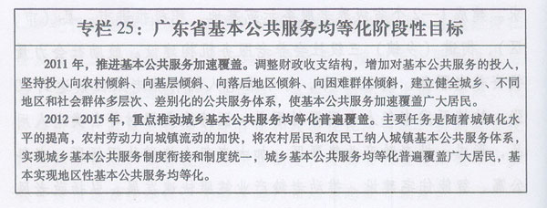 ? 第二章 強化中心城市集聚輻射功能 ? 增強中心城市的集聚資源和引領(lǐng)服務(wù)功能,進一步優(yōu)化發(fā)展布局,提升發(fā)展水平和競爭力,擴大輻射范圍,發(fā)揮龍頭帶動作用。 第一節(jié) 提升廣州服務(wù)帶動功能 增強廣州作為國家中心城市的高端要素集聚、科技創(chuàng)新、文化引領(lǐng)和綜合服務(wù)功能,強化組織經(jīng)濟活動和配置資源的中樞作用,突出發(fā)展服務(wù)經(jīng)濟,大力發(fā)展現(xiàn)代服務(wù)業(yè)和先進制造業(yè),在國際商貿(mào)中心、世界文化名城、國家創(chuàng)新型城市、綜合性門戶城市、區(qū)域文化教育中心和全省宜居城鄉(xiāng)的“首善之區(qū)”建設(shè)上取得實質(zhì)性進展,建設(shè)面向世界、服務(wù)全國的國際大都市。 第二節(jié) 增強深圳創(chuàng)新引領(lǐng)功能 強化深圳全國經(jīng)濟中心城市和國家創(chuàng)新型城市的輻射帶動作用,繼續(xù)發(fā)揮深圳作為經(jīng)濟特區(qū)和國家綜合配套改革試驗區(qū)的示范作用,加快推進發(fā)展模式、體制機制、科技、產(chǎn)業(yè)和社會文化全面創(chuàng)新,建設(shè)國家戰(zhàn)略性新興產(chǎn)業(yè)重要基地,聯(lián)手香港打造深港創(chuàng)新圈,努力建設(shè)中國特色社會主義示范市和現(xiàn)代化國際化先進城市。 第三節(jié) 發(fā)揮區(qū)域中心城市帶動作用 提升珠海、汕頭、湛江、韶關(guān)等市作為區(qū)域性中心城市的綜合承載能力和服務(wù)功能,進一步聚集經(jīng)濟和人口。加快建設(shè)粵東、粵西城鎮(zhèn)群,帶動區(qū)域整體發(fā)展。其他城市突出自身獨特的城市秉賦,錯位發(fā)展,壯大綜合實力,形成多極發(fā)展局面。 ? 第三章 發(fā)展壯大縣域經(jīng)濟 ? 把縣域經(jīng)濟作為統(tǒng)籌城鄉(xiāng)發(fā)展的關(guān)鍵環(huán)節(jié)和提高區(qū)域競爭力的重要層次,深化縣域體制機制改革,不斷增強縣域綜合實力,推進富縣強鎮(zhèn)取得新進展。 第一節(jié) 提升縣域綜合實力 以壯大經(jīng)濟規(guī)模、增加財政收入和提高人民生活水平為目標(biāo),將發(fā)展縣域經(jīng)濟與保護生態(tài)環(huán)境有機結(jié)合,推動工業(yè)化、城鎮(zhèn)化和農(nóng)業(yè)產(chǎn)業(yè)化“三化并舉”,促進城鄉(xiāng)互動協(xié)調(diào)發(fā)展。以工業(yè)園區(qū)為依托,改善投資軟硬環(huán)境,加大招商引資力度,注重發(fā)展配套經(jīng)濟和特色經(jīng)濟,大力培育縣域優(yōu)勢產(chǎn)業(yè)、優(yōu)勢企業(yè)和優(yōu)勢產(chǎn)品。以民營經(jīng)濟為主攻方向,培育縣域經(jīng)濟新的增長點。積極推進縣域功能分區(qū),不斷優(yōu)化縣域空間布局。集中力量建設(shè)縣城、中心鎮(zhèn)和專業(yè)鎮(zhèn),2015年完成專業(yè)鎮(zhèn)“一鎮(zhèn)一策”轉(zhuǎn)型升級改造。加快城鎮(zhèn)化進程,通過完善教育、醫(yī)療等生活配套設(shè)施引導(dǎo)人口和產(chǎn)業(yè)向縣域城鎮(zhèn)集聚,支持有條件的縣城和中心鎮(zhèn)發(fā)展為中小城市。 第二節(jié) 深化富縣強鎮(zhèn)事權(quán)改革 積極建立擴權(quán)動態(tài)管理機制,進一步擴大縣鎮(zhèn)政府經(jīng)濟社會管理權(quán)限,促進縣鎮(zhèn)政府權(quán)力與責(zé)任相一致。優(yōu)化鎮(zhèn)級政府組織結(jié)構(gòu),規(guī)范上級派出機構(gòu)與鎮(zhèn)級政府關(guān)系,探索建立鎮(zhèn)(鄉(xiāng))分類管理動態(tài)機制,激發(fā)鎮(zhèn)(鄉(xiāng))發(fā)展活力。創(chuàng)新特大鎮(zhèn)管理體制,賦予珠三角地區(qū)特大鎮(zhèn)縣級經(jīng)濟社會管理權(quán)限。深化省直接管理縣財政改革,完善基層政權(quán)組織財政保障機制,加強縣鎮(zhèn)政府提供基本公共服務(wù)財力保障。 ? 第四章 推進城鄉(xiāng)一體化管理 ? 堅持綜合配套、協(xié)調(diào)推進,統(tǒng)籌城鄉(xiāng)管理,推動城市資源向農(nóng)村輸出,促進城鄉(xiāng)互動、良性循環(huán)、共同發(fā)展,珠三角率先建成全國城鄉(xiāng)發(fā)展一體化先行示范區(qū)。 第一節(jié) 統(tǒng)籌城鄉(xiāng)規(guī)劃建設(shè) 推進城鄉(xiāng)規(guī)劃全覆蓋,統(tǒng)籌優(yōu)化城鄉(xiāng)生產(chǎn)、居住、生態(tài)和基礎(chǔ)設(shè)施的空間布局。加快村鎮(zhèn)規(guī)劃編制,力爭到2015年全省實現(xiàn)所有建制鎮(zhèn)的總體規(guī)劃和中心鎮(zhèn)的控制性詳細(xì)規(guī)劃全覆蓋,80%以上村莊完成規(guī)劃編制。制定優(yōu)惠扶持政策,積極引導(dǎo)城市資源投向農(nóng)業(yè)農(nóng)村。探索農(nóng)村住房制度改革,將解決農(nóng)村困難群眾住房問題逐步納入城鄉(xiāng)住房保障體系。 第二節(jié) 統(tǒng)籌城鄉(xiāng)社會管理 改革傳統(tǒng)的農(nóng)村社會管理方式,推動城市社會管理服務(wù)體系向農(nóng)村延伸,構(gòu)建適應(yīng)新農(nóng)村建設(shè)需要的農(nóng)村社區(qū)組織體系。推進中山、惠州等市統(tǒng)籌城鄉(xiāng)綜合配套改革試點,支持汕頭、佛山爭取列為國家統(tǒng)籌城鄉(xiāng)綜合配套改革試驗區(qū),積極探索打破城鄉(xiāng)分治,促進城鄉(xiāng)互動的社會管理新格局。 第三節(jié) 統(tǒng)籌城鄉(xiāng)戶籍管理 建立城鄉(xiāng)戶口統(tǒng)一登記管理制度,加快與戶籍制度相關(guān)的配套改革,加快消除城鄉(xiāng)居民在教育、醫(yī)療、社