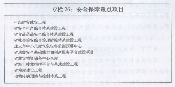 ? 第二節(jié) 加大政策保障力度 按照規(guī)劃綱要確定的目標(biāo)和任務(wù),研究制定規(guī)劃實施的財政、金融、稅收、價格、投資、產(chǎn)業(yè)、土地、人口、環(huán)保等相關(guān)配套政策,合理配置公共資源,有效引導(dǎo)社會資源。加強宏觀經(jīng)濟監(jiān)測預(yù)警,完善宏觀調(diào)控政策,把短期調(diào)控政策和長期發(fā)展政策有機結(jié)合起來,加強各項政策協(xié)調(diào)配合,確保規(guī)劃有效實施。 ? 第二章 強化重大項目支撐 ? 以規(guī)劃帶動項目建設(shè),以項目促進規(guī)劃落實,確立中長期規(guī)劃對重點項目布局的指導(dǎo)作用。 第一節(jié) 科學(xué)謀劃重大項目 實施重大項目帶動戰(zhàn)略,以增量投資促進結(jié)構(gòu)調(diào)整。加強前期工作,健全重點項目儲備庫,將規(guī)劃的重點項目具體落實到年度重點項目計劃實施,形成竣工一批、啟動一批、儲備一批的滾動機制?!笆濉逼陂g規(guī)劃建設(shè)的重點項目,總投資3.5萬億元,“十二五”期間投資2.38萬億元。其中,珠三角地區(qū)“十二五”期間投資1.33萬億元,占全省的56%;粵東西北地區(qū)“十二五”期間投資1.05萬億元,占全省的44%。