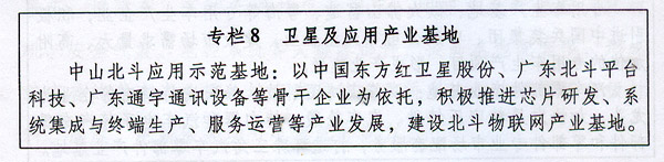 以中山市為主,重點發(fā)展衛(wèi)星通信、衛(wèi)星導航、衛(wèi)星遙感三大領(lǐng)域,不斷推進應(yīng)用概念和應(yīng)用模式創(chuàng)新,積極拓展衛(wèi)星在應(yīng)急、救災、氣象監(jiān)測、通用航空、智能交通、物聯(lián)網(wǎng)等應(yīng)用領(lǐng)域,著力發(fā)展衛(wèi)星導航終端及位置服務(wù)、衛(wèi)星通信廣播、自主遙感信息等衛(wèi)星應(yīng)用產(chǎn)業(yè)鏈,培育開發(fā)北斗衛(wèi)星空間基準授時、高分辨率高光譜遙感圖像處理及應(yīng)用和空間信息三維顯示等技術(shù)和裝備。到2017年,培育形成10家以上銷售額超億元的衛(wèi)星應(yīng)用企業(yè),初步建立區(qū)域衛(wèi)星應(yīng)用產(chǎn)業(yè)體系。