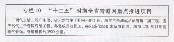 4.加快建設(shè)油氣管網(wǎng)。結(jié)合氣源項(xiàng)目建設(shè),加快完善珠江三角洲天然氣輸送主干管網(wǎng),推進(jìn)粵東、粵西、粵北天然氣主干管網(wǎng)建設(shè),逐步完善全省天然氣輸送管網(wǎng)。到2015年形成連接各氣源點(diǎn),以珠江三角洲為中心,通達(dá)全省各地級(jí)以上市的天然氣輸送主干管網(wǎng)絡(luò)。加快建設(shè)珠江三角洲成品油管道二期工程,積極推進(jìn)湛江、揭陽(yáng)煉化成品油送出配套工程和粵北成品油管道工程。結(jié)合新建、擴(kuò)建煉油項(xiàng)目,配套建設(shè)原油運(yùn)輸管道;根據(jù)惠州、湛江原油儲(chǔ)備庫(kù)建設(shè)進(jìn)度,配套建設(shè)連接儲(chǔ)備庫(kù)與煉油廠的原油管道。
