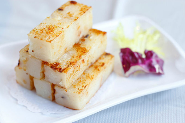 蘿卜糕,閩南地區(qū)稱之為“菜頭粿”,是中式傳統(tǒng)的糕點(diǎn),采用在來米粉,又稱再來米粉,是中式點(diǎn)心中最好使用的粉,可以在制作中式小吃如蘿卜糕、肉圓、碗粿時(shí)用到。然后在米粉漿中加入腌制好的蘿卜絲等材料,上蒸籠蒸制而成的糕點(diǎn)小吃。蘿卜糕顏色潔白,質(zhì)地柔軟,味道鮮美。它是一種冬春適令小吃,家庭常在年節(jié)制作。這種糕點(diǎn)吃法多樣,在我國閩南、廣東等地區(qū)都可有賣,價(jià)格便宜,好吃又營養(yǎng)。