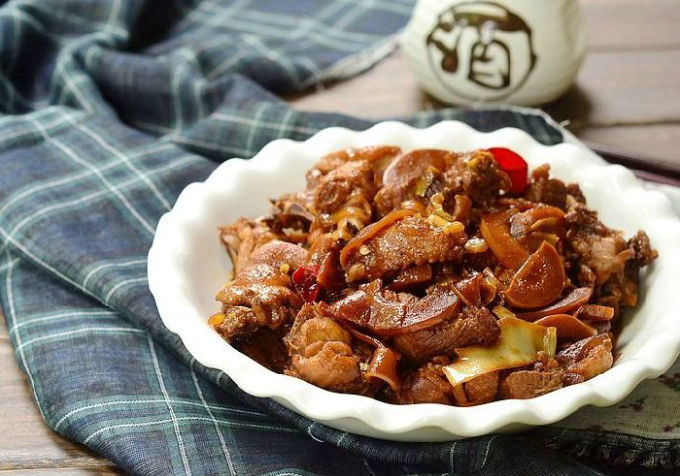 酸筍燜鴨是廣東韶關(guān)一帶的漢族風(fēng)味名菜,屬于粵菜系。廣東省南雄市山清水秀,養(yǎng)的鴨子很出名,肉質(zhì)很豐厚,口感柔軟。我們吃的酸筍燜鴨,是用新鮮鴨肉拌著酸筍、辣椒,先炒至金黃,再燜至爛熟,酸筍的酸味和辣椒的辣味都完全滲入到鴨肉里面去了,端上來的時(shí)候只聞得一陣香辣的味道,嘗起來更是滋味無窮。酸味拌著辣味,還有鴨肉本身的肉香,一起伴隨著每一下咀嚼而沖開來,盈滿了整個(gè)口腔和鼻腔,十分的霸道。因?yàn)橛兴峁S的參加,辣味更甚,只吃了一塊,便覺得胃口大開,忍不住要多吃兩口飯。其實(shí)在平常人家,若是做這種酸筍鴨,一定要隔餐吃,才覺得好味的。因?yàn)槿庵鋵?shí)很濃香,材料的味道大多留在了肉汁里,即使?fàn)F再爛,也是不能完全滲透到肉里面,若是隔了一餐來讓它入味,再重新燉熱,則更加能體會(huì)酸筍鴨的無窮風(fēng)味。