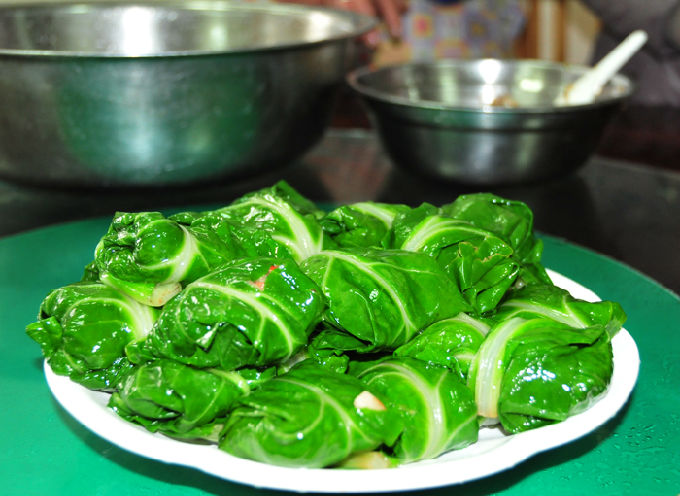 在始興縣,民間過元宵節(jié)除舞火龍之外,還有吃湯圓、釀油豆腐、做莙荙包的習俗。特別是莙荙包,不僅寓有祝君發(fā)達之意,而且色佳味美,菜性味甘涼,兼有清熱解毒的作用,更成為始興有名的特色美食之一。