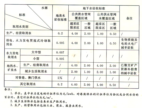 三、以下取用水類別的征收標準不作調整:核電、火力發(fā)電貫流式冷卻取用水,水力發(fā)電取用水,以及對港澳供水。