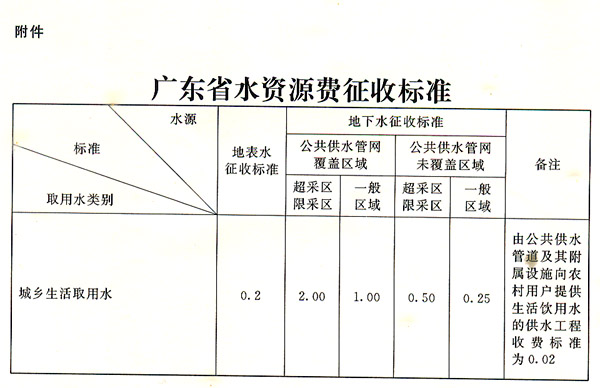 附件:廣東省水資源費征收標準