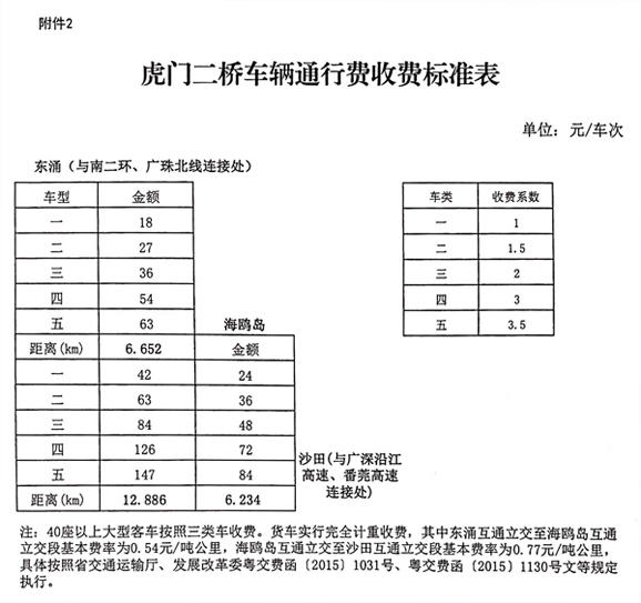 2.虎門(mén)二橋車(chē)輛通行費(fèi)收費(fèi)標(biāo)準(zhǔn)表
