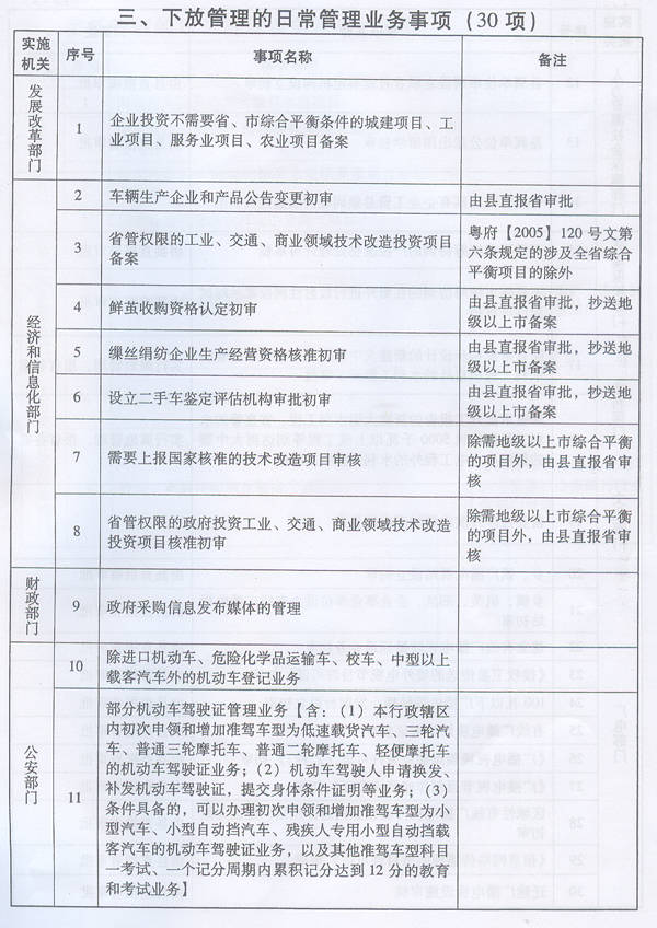 《廣東省第二批擴大縣級政府管理權限事項目錄》業(yè)經(jīng)2011年5月27日廣東省人民政府第十一屆73次常務會議通過,現(xiàn)予公布,自公布之日起施行。