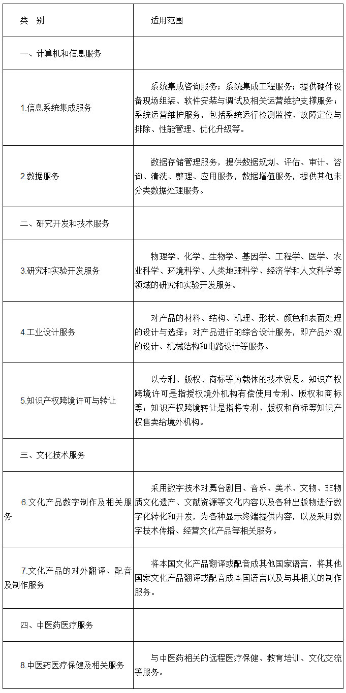 技術(shù)先進型服務(wù)業(yè)務(wù)領(lǐng)域范圍(服務(wù)貿(mào)易類)
