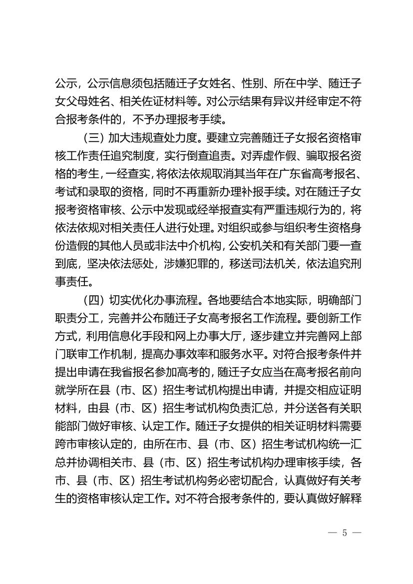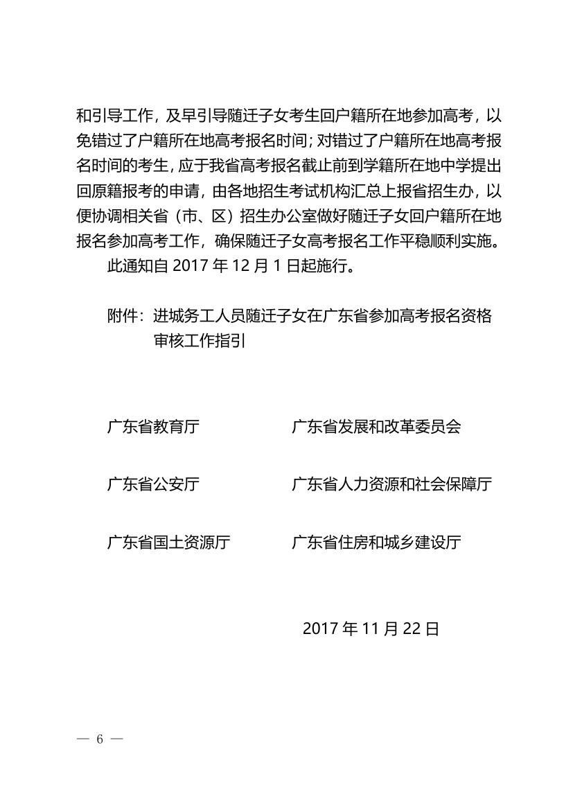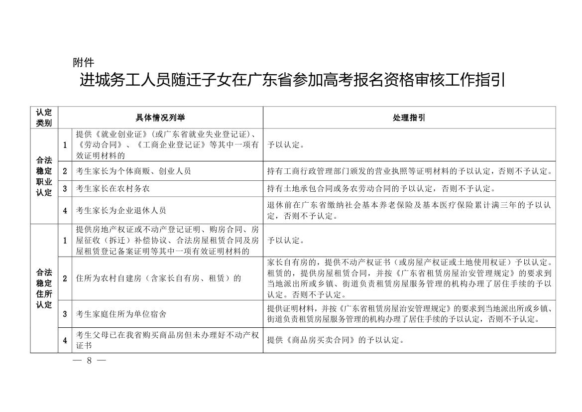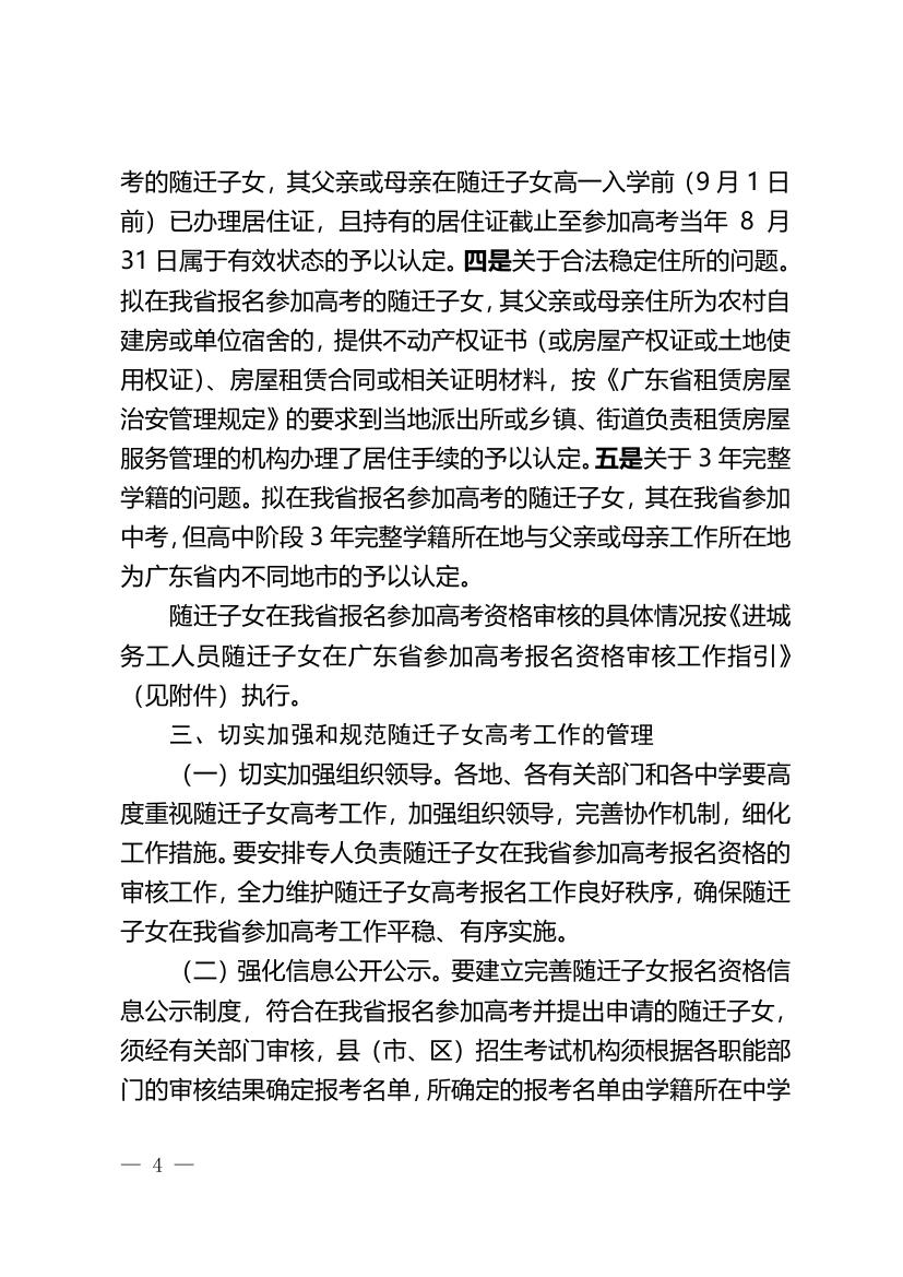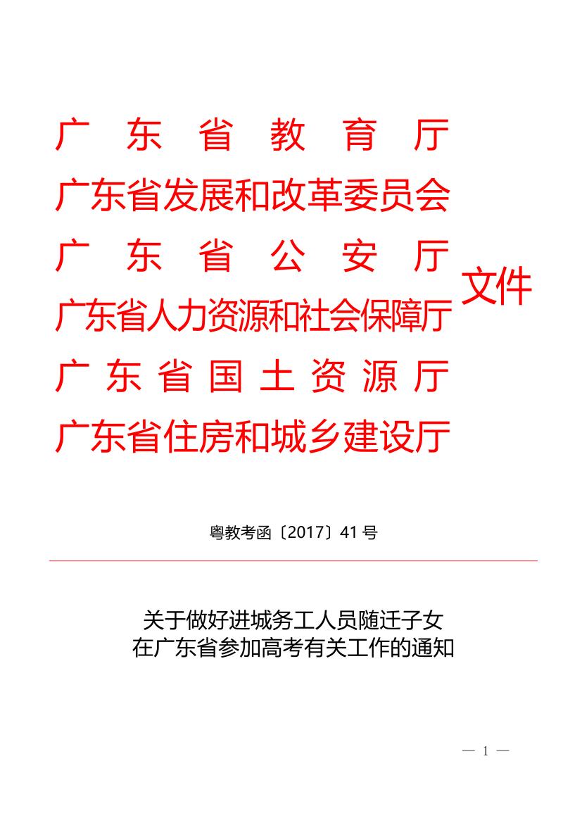 關(guān)于進(jìn)城務(wù)工人員隨遷子女在廣東省參加高考有關(guān)工作的通知