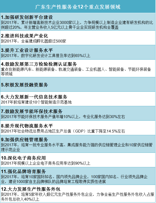 廣東發(fā)力生產(chǎn)性服務(wù)業(yè)12大重點(diǎn)領(lǐng)域