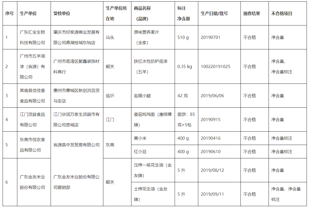 根據(jù)《中華人民共和國計量法》《廣東省實施<中華人民共和國計量法>辦法》等相關規(guī)定,我局開展了2019年度定量包裝商品凈含量省級計量專項監(jiān)督抽查?,F(xiàn)將抽查結(jié)果予以通告。