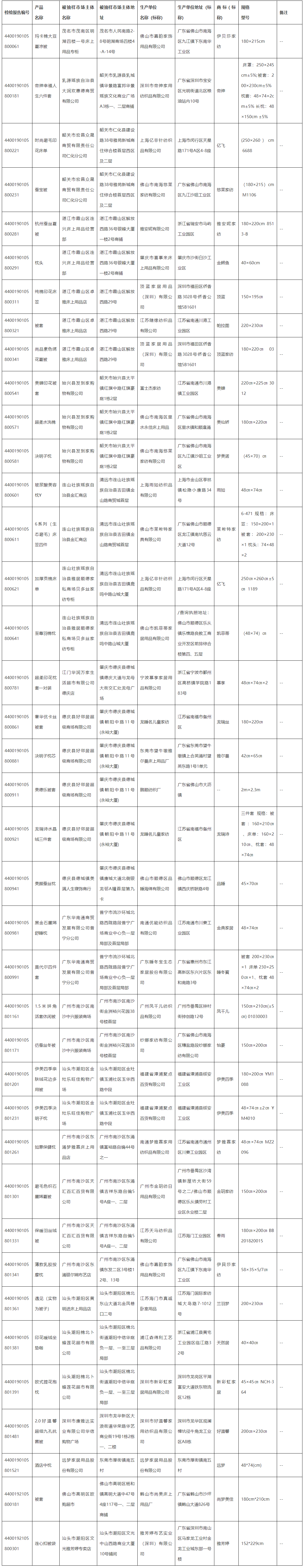 根據(jù)《中華人民共和國(guó)產(chǎn)品質(zhì)量法》《廣東省產(chǎn)品質(zhì)量監(jiān)督條例》等相關(guān)規(guī)定,廣東省市場(chǎng)監(jiān)督管理局開展了床上用品產(chǎn)品質(zhì)量監(jiān)督抽查,廣東產(chǎn)品質(zhì)量監(jiān)督檢驗(yàn)研究院、廣東省揭陽(yáng)市質(zhì)量計(jì)量監(jiān)督檢測(cè)所和汕尾市質(zhì)量計(jì)量監(jiān)督檢測(cè)所負(fù)責(zé)抽樣、檢驗(yàn)技術(shù)服務(wù)工作?,F(xiàn)將有關(guān)情況通告如下: