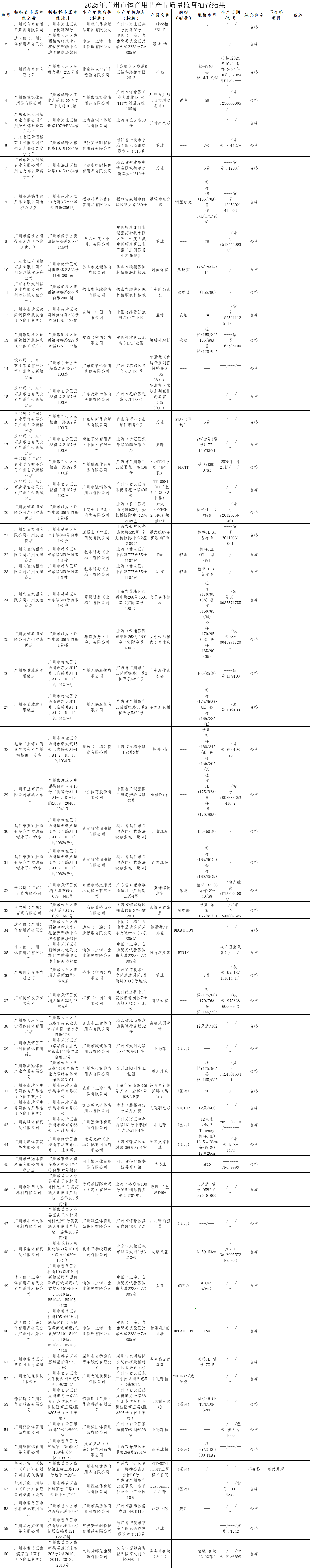 附件:2025年廣州市體育用品產(chǎn)品質(zhì)量專項監(jiān)督抽查結(jié)果