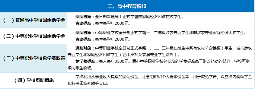 各地各學(xué)校也根據(jù)實際情況,制定了本地本校的學(xué)生資助政策,具體內(nèi)容可向當(dāng)?shù)亟逃块T和學(xué)校咨詢。